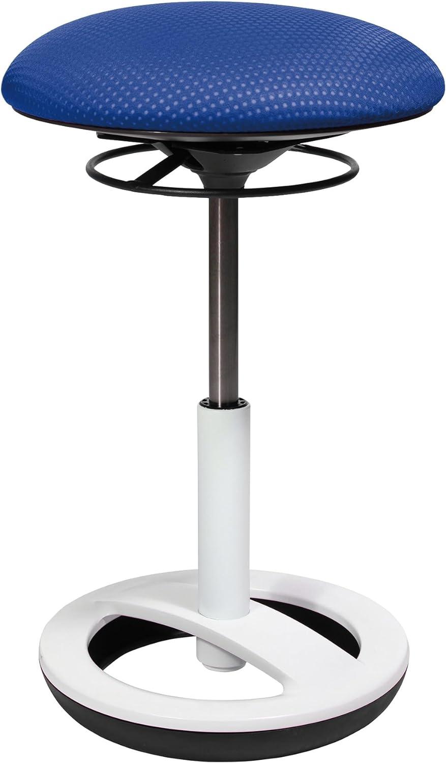 **Patentierter Fitness-Hocker für ergonomisches und bewegliches Sitzen. Dieser bequeme Hocker ist platzsparend und flexibel und punktet mit einer erstklassigen Verarbeitung und Qualität. Ausführung** Bezug: Stoff in der Farbe blau aus 100% Polyester Design-Standfußring Aluminium weiß lackiert **Maße** Sitzhöhe ca. 44-57 cm Sitzbreite ca. 36,5 cm Sitztiefe ca. 36,5 cm **Ausstattung** neu entwickelte Sitzalternative für bewegliches Sitzen, trainiert den Rücken und wirkt präventiv gegen Rückenprobleme vielfältiger Einsatz in Büro, Kinderzimmer, Werkstatt, Küche und Haushalt ect. stufenlose Sitzhöhenverstellung mit weiß lackierter Gasfeder über Ringauslösehebel unter dem Sitz horizontaler Schwingeffekt durch ein bewegliches Reifenelement aus TPU (Thermoplastische Polyurethane) Design-Standfußring **Gewicht** ca. 6 kg **Belastbarkeit** bis maximal ca. 110 kg **Wissenswertes** Dieses Modell trägt das GS-Zeichen der Intertek in Fürth und erfüllt in diesem Zusammenhang sämtliche sicherheitsrelevanten Voraussetzungen. Hergestellt in Deutschland. **Lieferumfang** 1 Fitness-Hocker