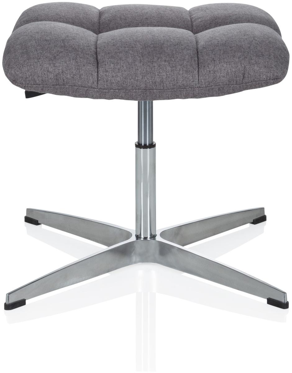 Der hjh OFFICE Home Office Bürostuhl SARANTO in Grau vereint trendiges Retro-Design im Stil der 70er Jahre mit hervorragendem Sitzkomfort. Er kann vielseitig als Bürostuhl oder Fußablage genutzt werden und bringt einen Hauch von Nostalgie in Ihr Zuhause. **Highlights** - Trendiges Retro-Design im Stil der 70er Jahre - Hoher Sitzkomfort für angenehmes Arbeiten - Vielseitig als Bürostuhl oder Fußablage einsetzbar **Produkteigenschaften** - Farbe: Grau - Material: Stoff - Maße (H x B x T): 51 x 47 x 47 cm - Stufenlos regulierbare Sitzhöhe - Dicke Sitzpolsterung für zusätzlichen Komfort - Formschönes Designer-Fußkreuz aus Edelstahl für sicheren Stand