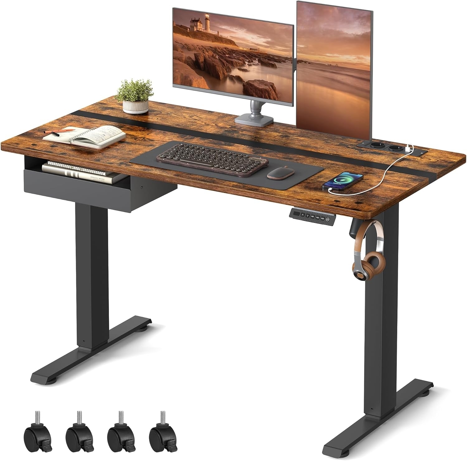 | Name | Vasagle Höhenverstellbarer Schreibtisch elektrisch, mit Steckdose und Schublade, stufenlos verstellbar, Memory-Funktion mit 4 Höhen, vintagebraun-schwarz, Tischoberfläche 60x120 cm |
