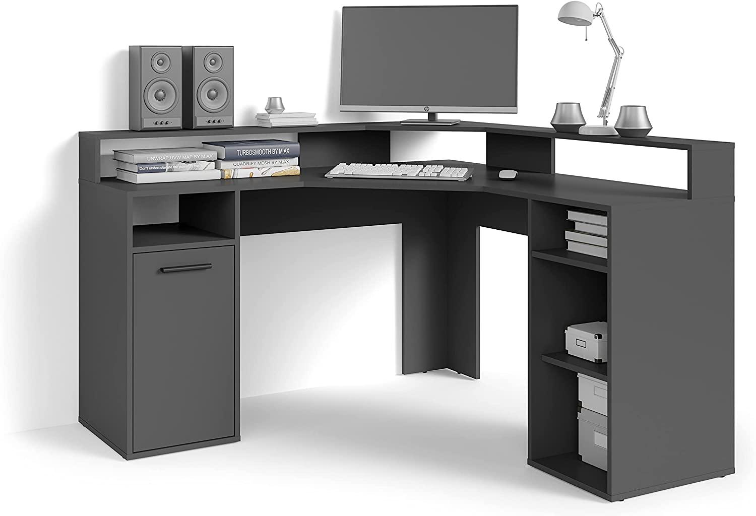 byLiving 'Fox' Schreibtisch in Anthrazitmit Aufsatz, Anthrazit, 139 x 90,8 x 139 cm