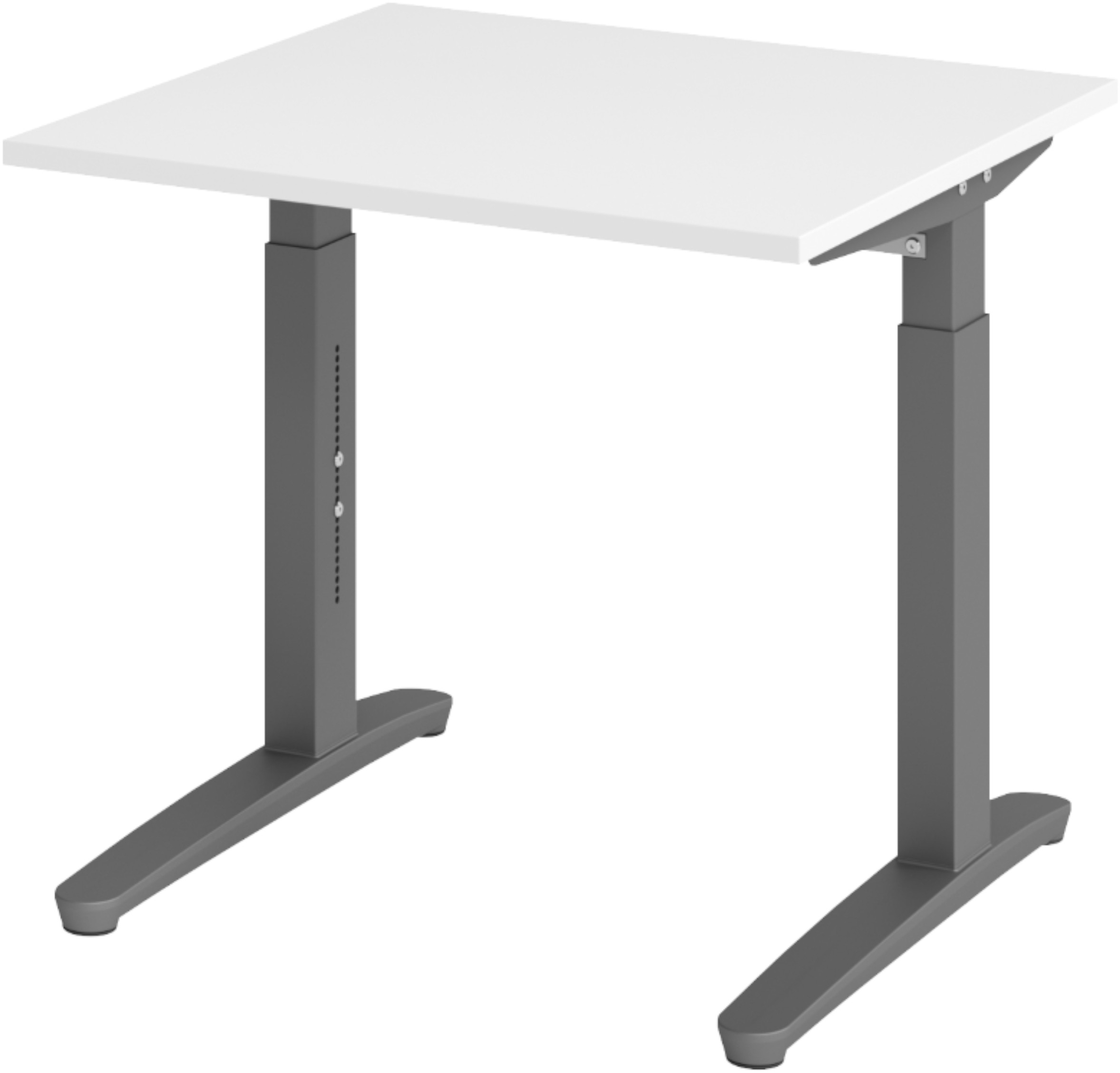 in Bürotischebümö manuell höhenverstellbarer Schreibtisch 80x80 in weißGestell in graphit - PC Tisch höhenverstellbar & klein, höhenverstellbarer Tisch Büro, kleiner Computertisch verstellbar, X08-W-GG