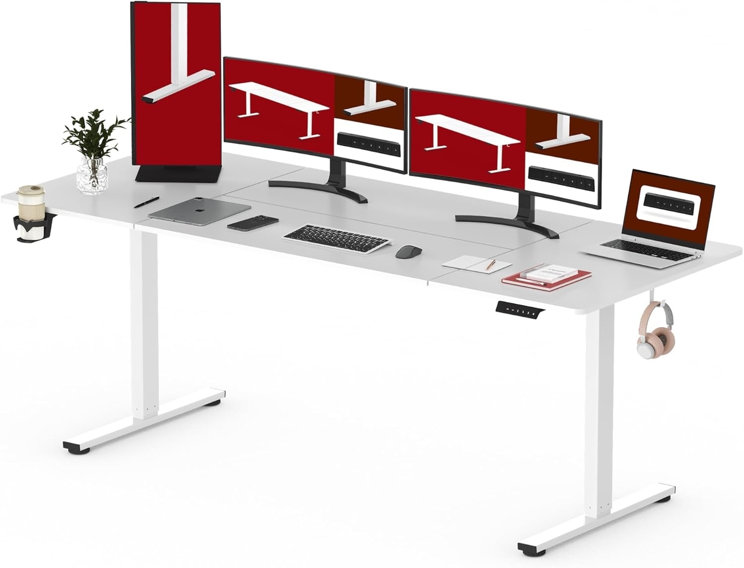 SANODESK Höhenverstellbarer Schreibtisch 200x80 cm Schreibtisch Höhenverstellbar Elektrisch Ergonomischer Steh-Sitz Tisch Computertisch für Heimbüro Homeoffice(weiß)