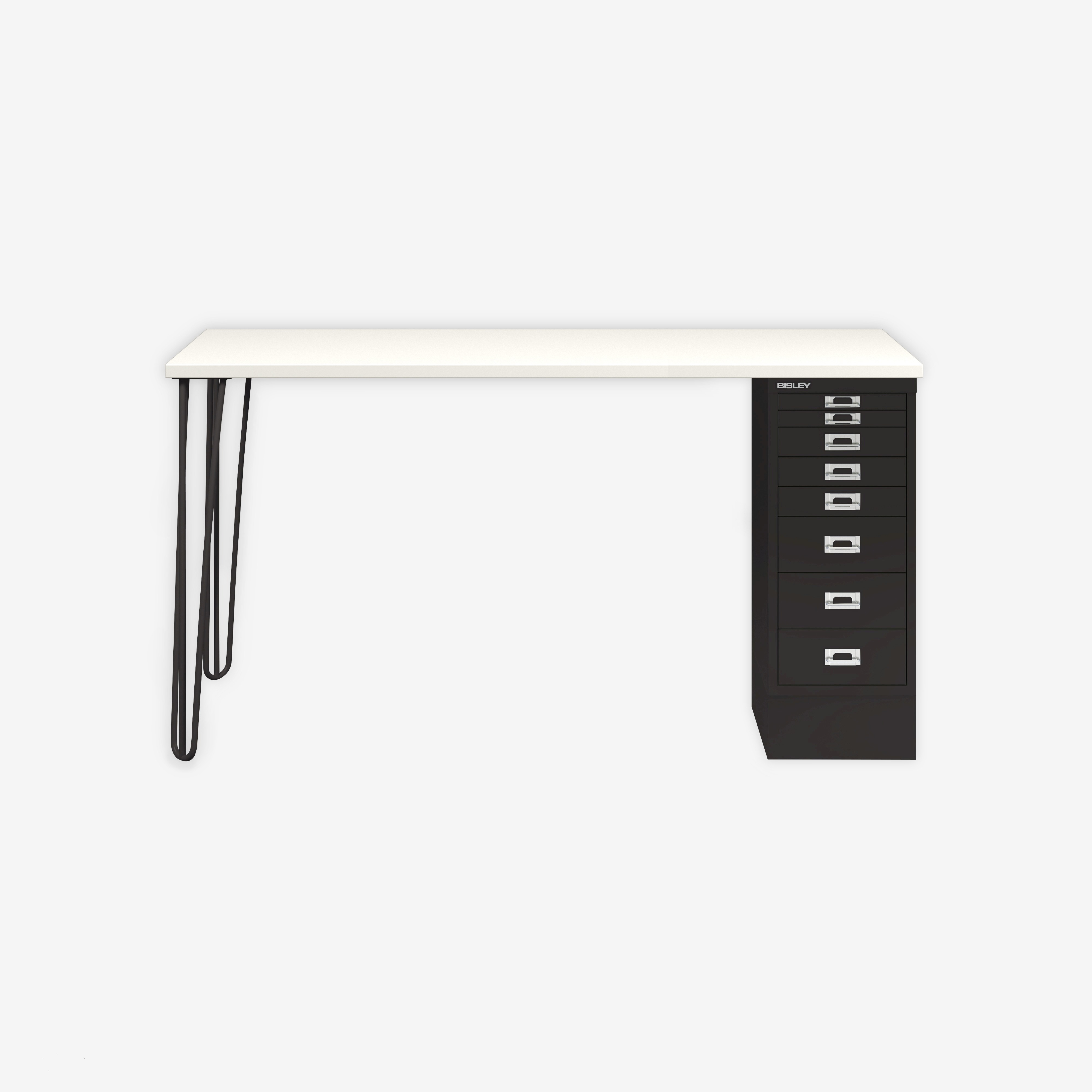 | Name | MultiDesk, 2 Eichenfüße, 1 MultiDrawer mit 8 Schüben, Dekor Weiß, Farbe Schwarz, Maße: H 740 x B 1400 x T 600 mm |