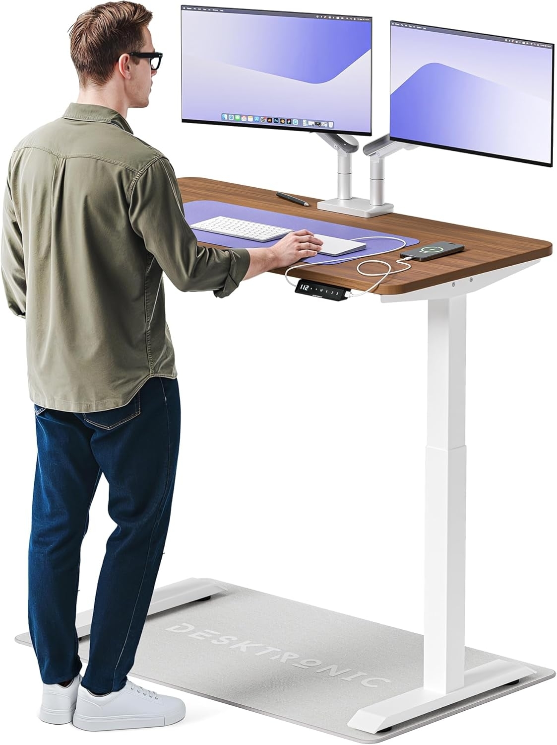 EINIGE ELEKTRISCH HÖHENVERSTELLBARE SCHREIBTISCHE VERWENDEN SCHWACHE MOTOREN, die schnell ausfallen. Der elektrische Stehschreibtisch von Desktronik verfügt über einen HOCHWERTIGEN, VOM TÜV RHEINLAND ZERTIFIZIERTEN MOTOR für zuverlässiges Verstellen. Dank der innovativen TOUCHSCREEN-STEUERUNG mit 3 VOREINSTELLUNGEN können Sie die Höhe Ihres Stehpults ganz einfach anpassen und so UNNÖTIGE BELASTUNGEN UND ERMÜDUNGSERSCHEINUNGEN aufgrund einer falschen Positionierung VERMEIDEN. DAS LETZTE, WAS SIE BRAUCHEN, IST EIN WACKELIGER VERSTELLBARER SCHREIBTISCH, der das Arbeiten noch mehr erschwert. Unser Steh-Sitz-Schreibtisch wurde in präziser europäischer Qualitätsarbeit konstruiert und hat EXTRABREITE, 70x70 mm große, höhenverstellbare Tischbeine aus hochwertigstem VERSTÄRKTEM STAHL, der bis zu 50 % dicker ist als bei anderen Bürotischen - für einen verstellbaren Steh-Schreibtisch, der JEDERZEIT SICHER STEHT! Unser elektrischer Schreibtisch enthält EINE SCHRITT-FÜR-SCHRITT-ANLEITUNG und ein komplettes WERKZEUGSET - ALLES, WAS SIE für einen SCHNELLEN AUFBAU BENÖTIGEN. Mit SORGFÄLTIG PLATZIERTEN, VORGEBOHRTEN LÖCHERN und strapazierfähigen, fachmännisch zugeschnittenen Materialien kann unser Schreibtisch GANZ SCHNELL AUFGEBAUT werden, und noch EHE SIE SICH VERSEHEN, werden Sie BEQUEM an Ihrem höhenverstellbaren Homeoffice Arbeitsplatz STEHEN. MIT INTEGRIERTEN USB-C/USB-ANSCHLÜSSEN zum bequemen Aufladen von Geräten ist unser Stehtisch so konzipiert, dass er Ihre Produktivität steigert. Er verfügt über ein Antikollisionssystem, das GEGENSTÄNDE ERKENNT, UM EINEN AUFPRALL ZU VERHINDERN, eine KINDERSICHERUNG und ABGERUNDETE ECKEN. Er wird aus 25mm FSC melaminharzbeschichteten Spanplatten und Laminat mit TÜV Rheinland Gestellen hergestellt und ist FÜR EINE LANGE LEBENSDAUER AUSGELEGT. In VERSCHIEDENEN FARBEN UND ABMESSUNGEN erhältlich. Wir bei DESKTRONIC SIND DER MEINUNG, DASS SIE IHRE GESUNDHEIT NIEMALS FÜR IHRE ARBEIT AUFS SPIEL SETZEN SOLLTEN - vor allem, da wir etwa 1/3 unseres Lebens mit Arbeit verbringen. Deshalb haben WIR ES UNS ZUR MISSION GEMACHT, innovative BÜROTISCHE UND ARBEITSSTATIONEN ZU ENTWICKELN, BEI DENEN GESUNDHEIT UND KOMFORT AN ERSTER STELLE STEHEN. Wir hoffen, dass unser Stehpult, das IN UNSERER EIGENEN FABRIK IN EUROPA HERGESTELLT wird, Ihnen dabei hilft, sich immer gut zu fühlen.