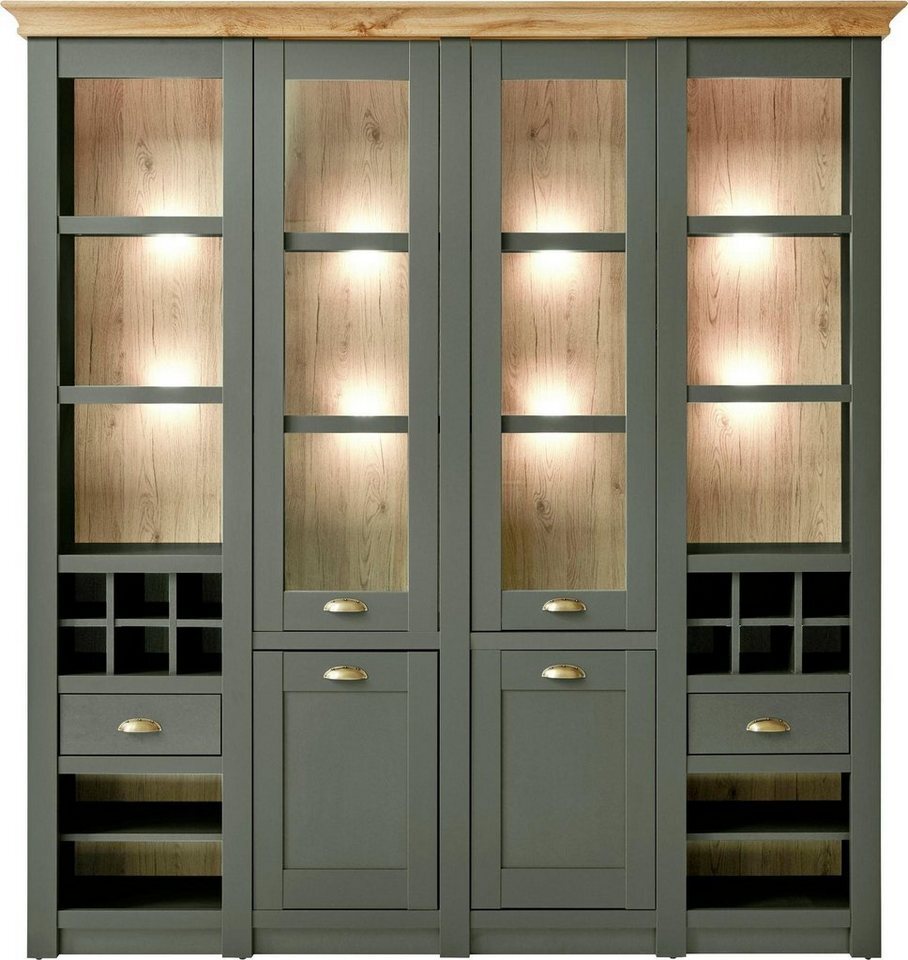 Der Buffetschrank »CAMBRIDGE« von Home affaire kombiniert ansprechenden Landhausstil mit großzügigem Stauraum. Mit einer Breite von ca. 194 cm bietet er ausreichend Platz für Bücher, Deko-Figuren und Geschirr. Blickoffene Ablagen hinter Glastüren und Fächer in verschiedenen Größen verleihen dem Schrank individuellen Charme. Der Korpus in zeitlosem Uni und die naturbelassene Holzton-Abdeckplatte setzen stilvolle Akzente in Ihrem Essbereich. **Highlights** - Ansprechender Landhausstil - Großzügige Breite von ca. 194 cm - Blickoffene Ablagen hinter Glastüren - Fächer in verschiedenen Größen - Muschelgriffe und Beschläge in Messing-Optik **Produkteigenschaften** - Korpus in zeitlosem Uni - Abdeckplatte und Rückwand in naturbelassenem Holzton - Vielseitiger Stauraum für Bücher, Deko und Geschirr