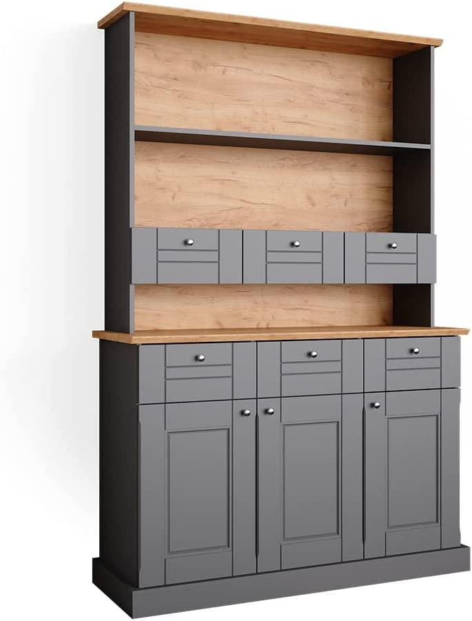in BuffetschränkeVicco Küchenvitrine Sideboard Küchenregal Bergamo Grau Eiche Küchen Schrank 121x87 cm Vintage Ablage Schublade Schranktür Anrichte Küchenmöbel