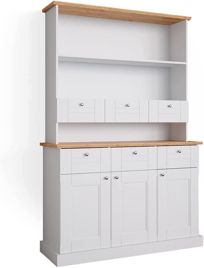 in BuffetschränkeVicco Küchenvitrine Sideboard Küchenregal Bergamo Weiß Eiche Küchen Schrank 121x87 cm Vintage Ablage Schublade Schranktür Anrichte Küchenmöbel