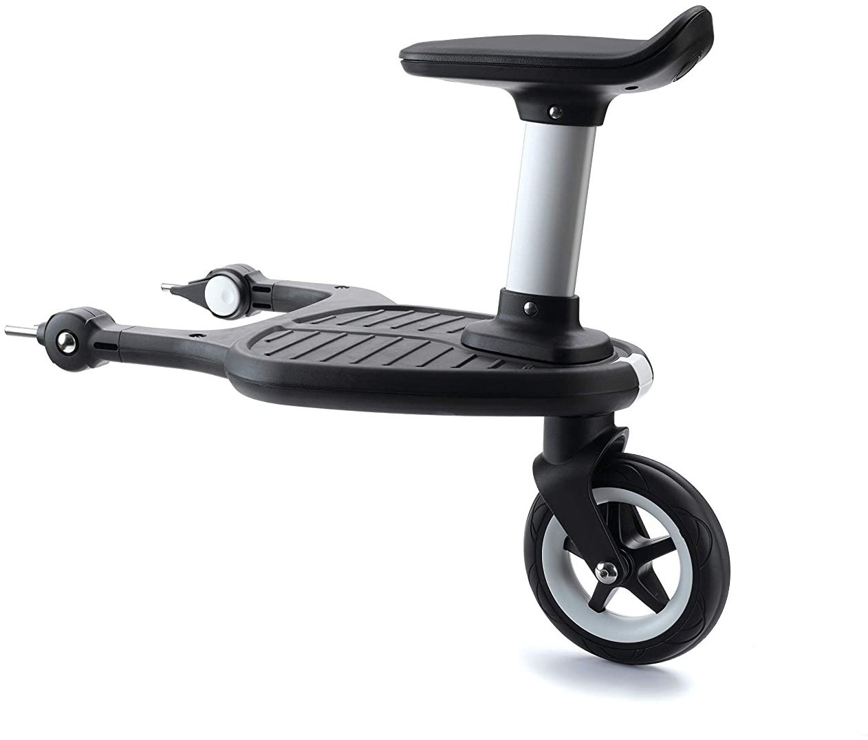 - Das Bugaboo Komfort-Mitfahrbrett lässt sich mit zwei Klicks am Gestell deines Bugaboo Kinderwagens anbringen.