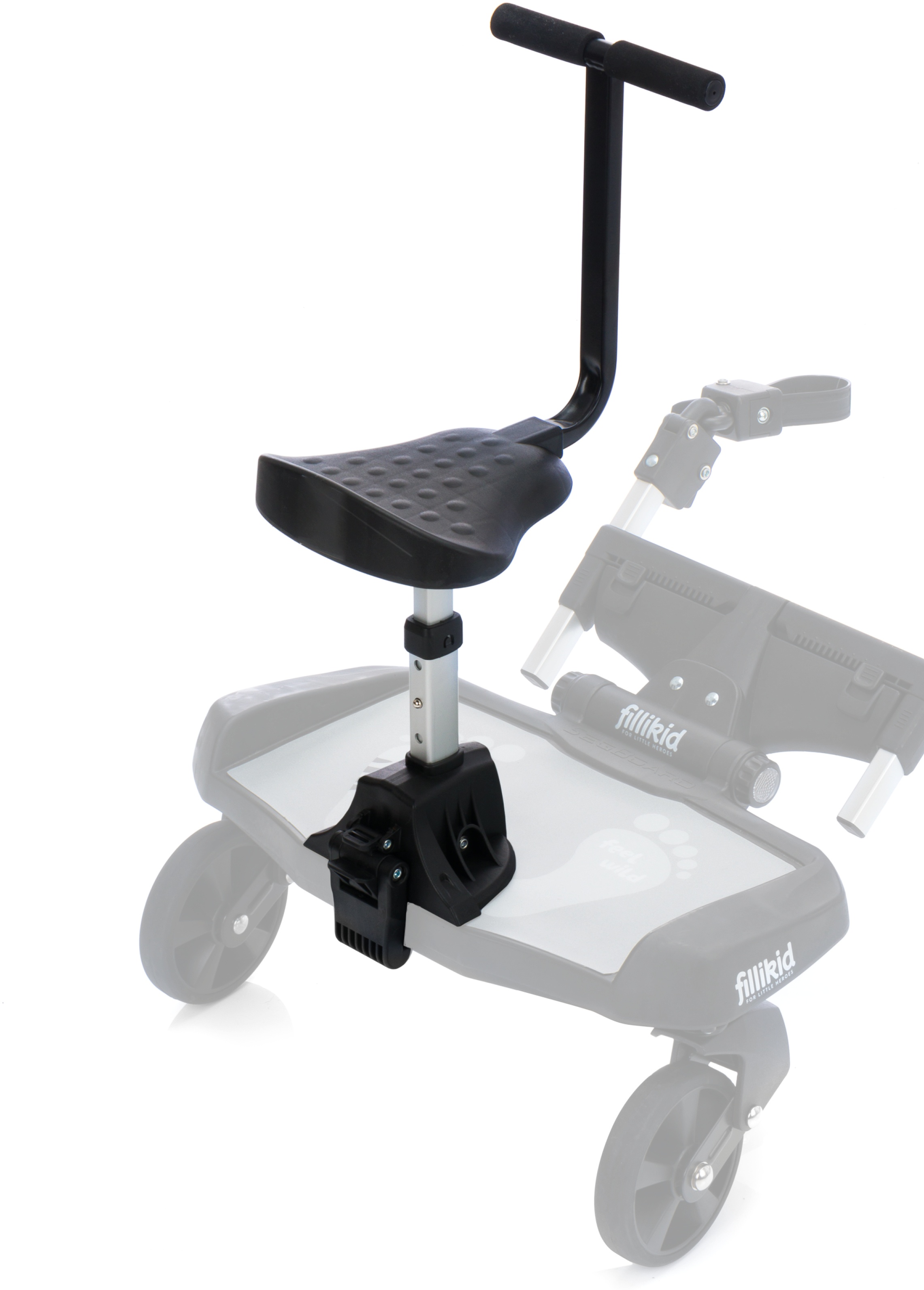- Der Fillikid Buggyboard-Sitz bietet einen bequemen Sattel und einen Sicherheitsgriff, sodass das ältere Kind sicher und komfortabel sitzen kann.