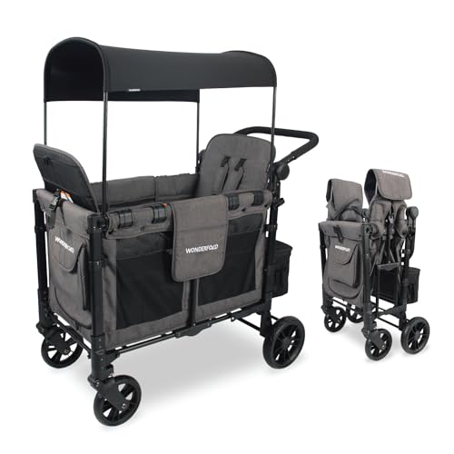WONDERFOLD W2 Elite - Cochecito doble con 2 asientos altos cara a caraarneses de 5 puntos, mango ajustable y toldo de protección UV, W2 Elite Gray