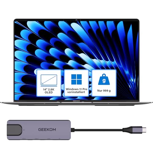 - Der GEEKOM GeekBook X14 Pro ist ein ultraleichter Business-Laptop mit einem Gewicht von nur 999 g und einer Dicke von 6 mm, gefertigt aus hochwertiger Magnesiumlegierung