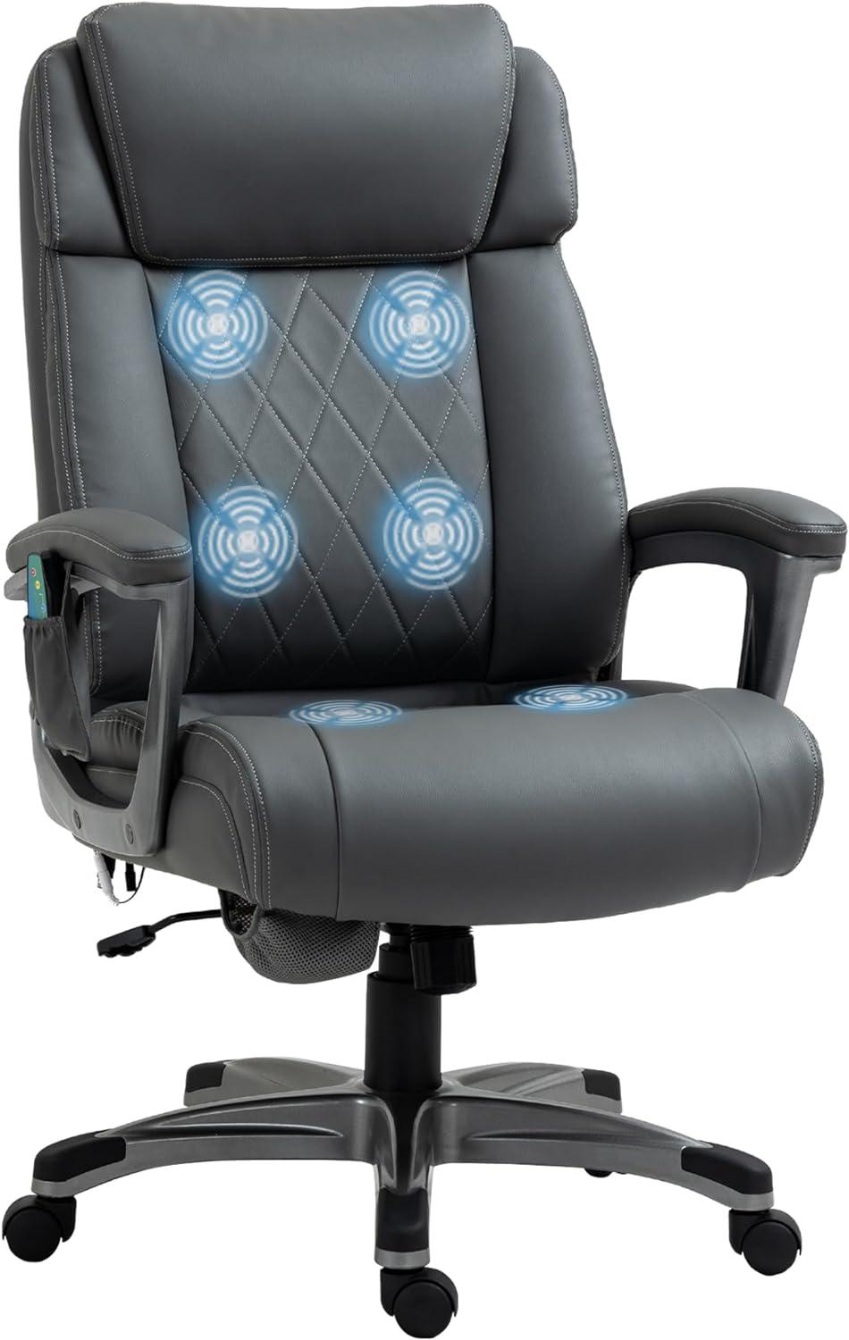 in ChefsesselVinsetto Massage-Bürostuhl 6-Punkt-Massage-Drehstuhl ergonomischer Stuhl Einstellbare aus Kunstleder mit gewölbter Kopfstütze und Armlehne Grau 70 x 76,5 x 114-124 cm