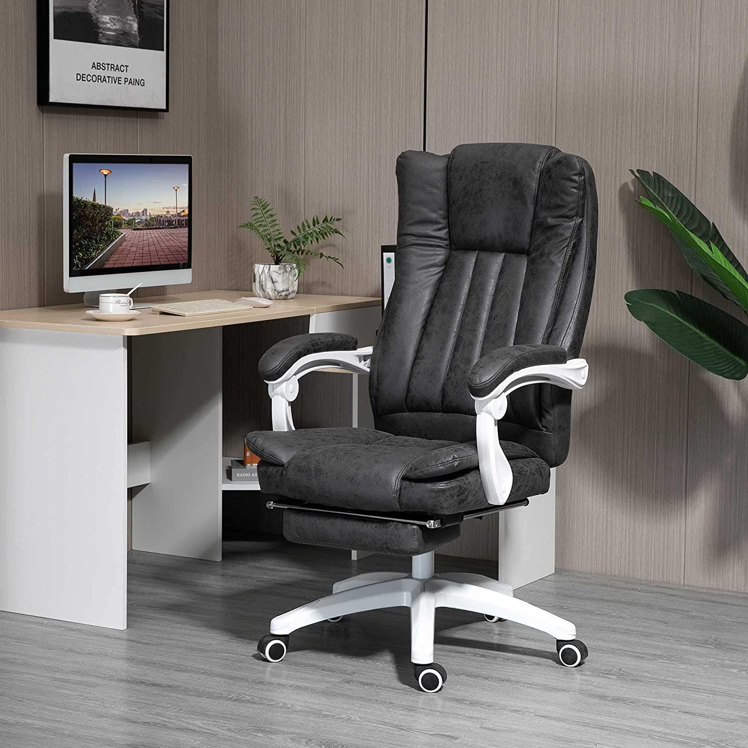 in ChefsesselVinsetto Bürostuhl Drehstuhl mit Liegefunktion Fußstütze Bürosessel Sitzhöhenverstellung Stuhl Schreibtischstuhl Mikrofaser Kunststoff Metall Nylon Schwarz+Dunkelgrau 63 x 71 x 110-118 cm