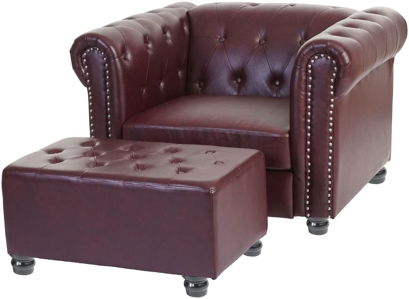 in Chesterfield SesselLuxus Sessel Loungesessel Relaxsessel Chesterfield Kunstleder ~ runde Füßerot-braun mit Ottomane