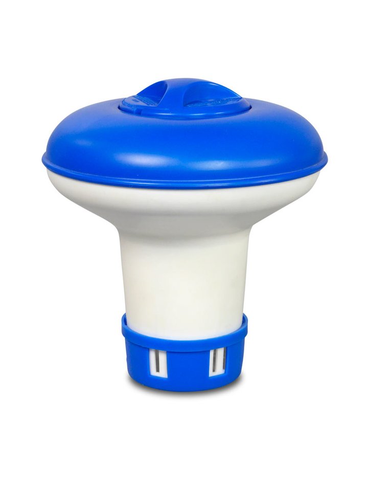 - Der Dosierschwimmer treibt auf der Wasseroberfläche und sorgt für eine gleichmäßige Desinfektion des Wassers.