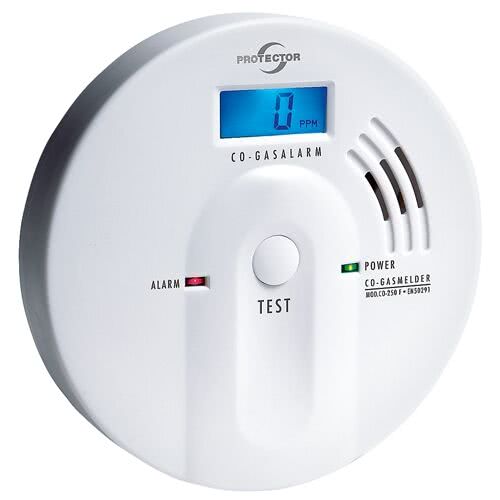 - Der Protector CO-Gasmelder CO-250F alarmiert bei erhöhtem Kohlenmonoxid-Anteil in der Raumluft mit einem 85 dB lauten Alarmton und rotem Blinklicht.