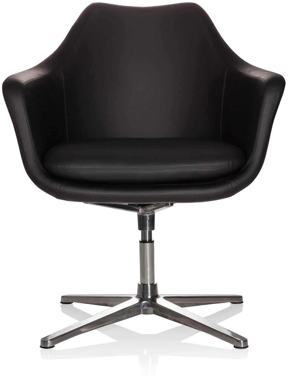 Der hjh OFFICE Loungesessel ARTEMIA aus hochwertigem Kunstleder in Schwarz vereint stilvolles Lounge-Design mit hohem Sitzkomfort. Die edle Polsterung und die Arm- sowie Rückenlehne bieten optimalen Komfort. Dank der Rückholautomatik kehrt der Sessel nach dem Aufstehen automatisch in die Ausgangsposition zurück. Das Designer-Fußkreuz aus poliertem Aluminium sorgt für Stabilität und Sicherheit. Ideal für Wohnbereiche, Besprechungszimmer oder als Ergänzung zu Ledercouches. **Highlights** - Hochwertiger Kunstlederbezug für lange Lebensdauer - Rückholautomatik für einfache Handhabung - Edle Polsterung für hohen Sitzkomfort - Arm- und Rückenlehne für zusätzlichen Komfort - Designer-Fußkreuz aus poliertem Aluminium für Stabilität **Produkteigenschaften** - Abmessungen (H x B x T): 85 x 67 x 63 cm