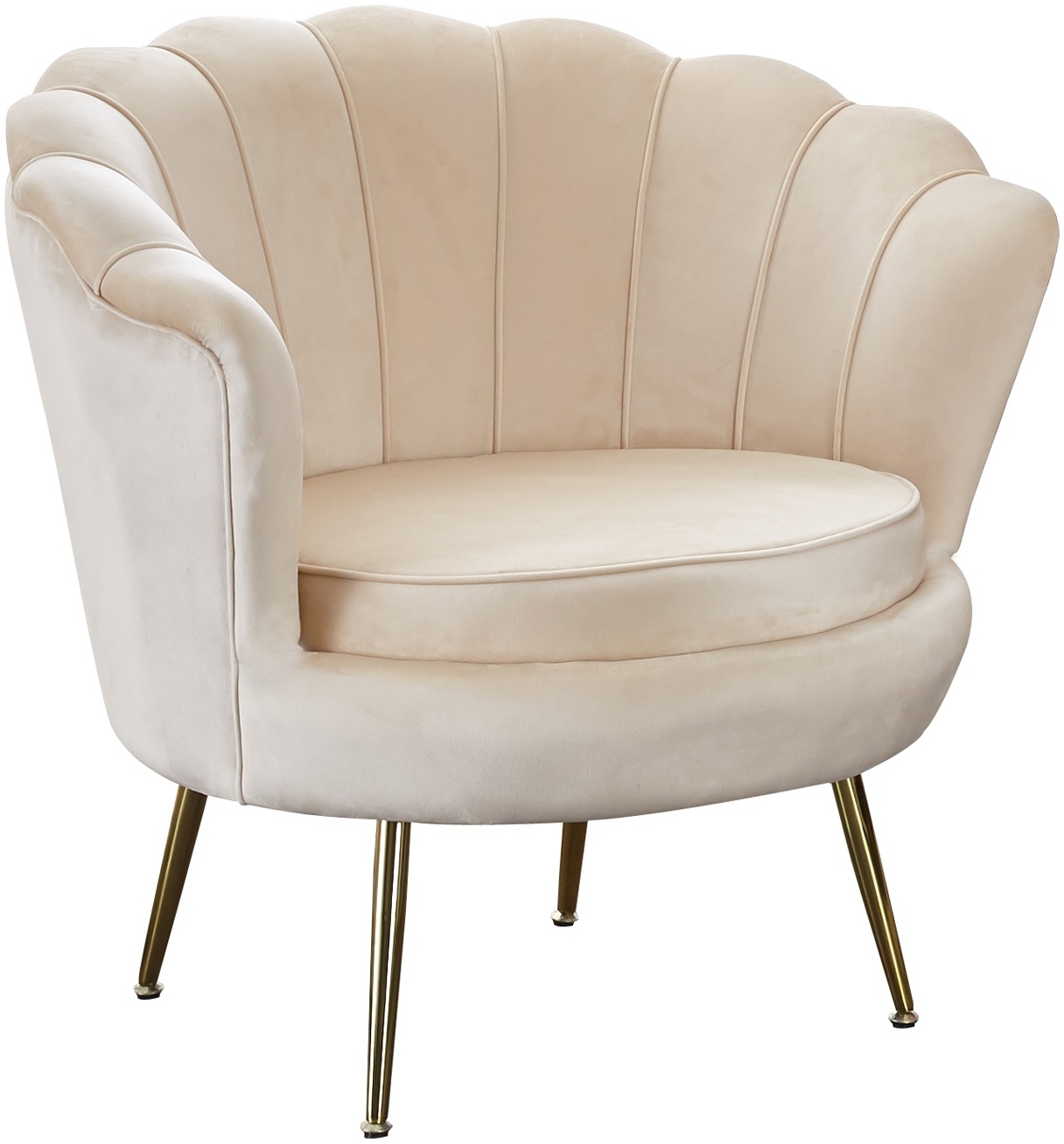 - Der Sessel im Muschel-Design bietet einen edlen Stoffbezug in Samt-Optik in Beige