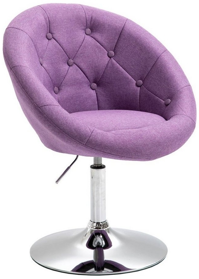 Der SVITA Havanna Sessel in Violett vereint gemütlichen Komfort mit imposantem Retro-Design. Der drehbare und höhenverstellbare Sitz aus pflegeleichtem Polyester bietet eine weiche Polsterung und einen stabilen, silbernen Tellerfuß. Mit Gesamtmaßen von ca. 75-88 x 62 x 58 cm (H x B x T) und einer verstellbaren Sitzhöhe zwischen ca. 43 cm und 54 cm ist dieser Sessel ideal für verschiedene Räume und sorgt für stilvolle Akzente. **Highlights** - Imposantes Retro-Design - Drehbarer und höhenverstellbarer Sitz - Kapitonierter Bezug mit weicher Polsterung - Vielseitig einsetzbar in verschiedenen Räumen - Garantiert ein Hingucker **Produkteigenschaften** - Gesamtmaße: ca. 75-88 x 62 x 58 cm (H x B x T) - Durchmesser der Sitzfläche: ca. 34 x 40 cm - Sitzhöhe verstellbar zwischen ca. 43 cm und 54 cm - Höhe der Rückenlehne: ca. 44 cm - Fußdurchmesser: ca. 45 cm - Material: Polyester - Farbe: Violett - Gewicht: ca. 11,5 kg **Lieferumfang** - 1x Sessel - Einfache Montage - Neu und original verpackt