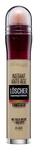 - Der Maybelline New York Instant Anti-Age Effekt Concealer 'Der Löscher' Auge ist ein flüssiger Concealer in hellem Braun, der Hautunebenheiten, Rötungen, Augenfalten, Krähenfüße, Schwellungen und dunkle Augenringe wie ausgelöscht erscheinen lässt
