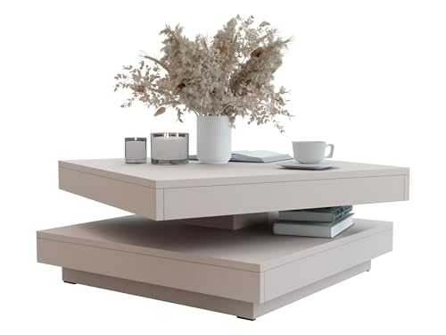 Mirjan24 Couchtisch Kaschmirquadratisch aus Holzwerkstoff, 70x34x70 cm, drehbare Tischplatte, Antirutschfüße