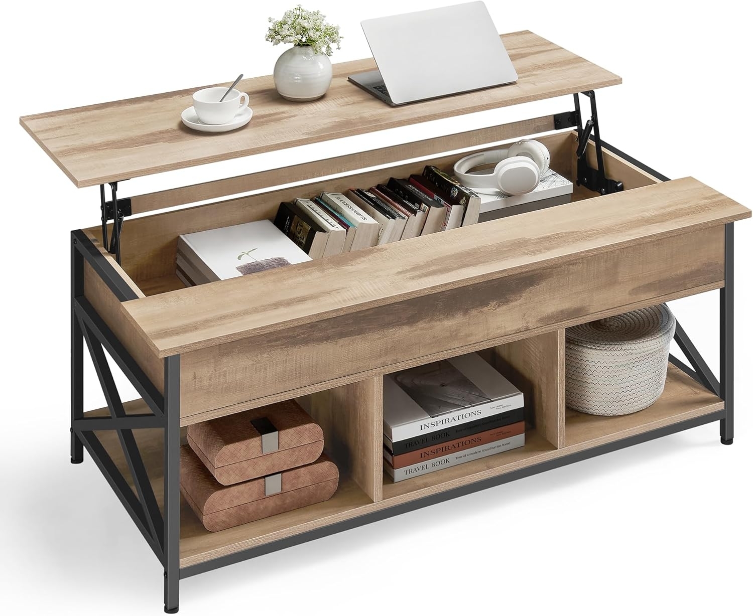 | Name | Vasagle Couchtisch, höhenverstellbarer Wohnzimmertisch, Kaffeetisch, offener und versteckter Stauraum, X-Streben, 60x120 x (48-62) cm,kamelbraun-schwarz |