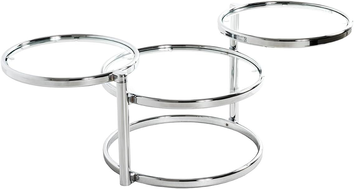 Der HAKU Möbel Couchtisch ist ein runder Glastisch mit 3 Flächen in Chromoptik. Er besteht aus gehärtetem Sicherheitsglas und verchromtem Metall. Mit einer Höhe von 50 cm und schwenkbaren Glasplatten von 45x140 cm bietet er ausreichend Platz für Ihre Gegenstände. Mit einem Gewicht von ca. 10 kg ist er stabil und robust. Der Tisch besticht durch sein zeitloses und dennoch modernes Design und ist ein Blickfang in jedem Raum. Egal ob als Beistelltisch im Wohnzimmer oder als Dekorationspresenter im Flur, dieser Glastisch passt in jedes Zuhause. Die Kombination aus klarem Glas und Chromoptik verleiht Ihrem Wohnraum eine ganz besondere Atmosphäre. Der HAKU Möbel Couchtisch ist sowohl für Liebhaber des Retrolooks als auch für Fans des modernen Wohnstils geeignet. Er überzeugt nicht nur durch seinen zeitlosen Stil, sondern auch durch seine Funktionalität. **Highlights** - Runder Glastisch mit 3 Flächen in Chromoptik - Gehärtetes Sicherheitsglas und verchromtes Metall - Schwenkbare Glasplatten von 45x140 cm - Stabile Konstruktion mit einem Gewicht von ca. 10 kg - Zeitloses und dennoch modernes Design **Produkteigenschaften** - Höhe: 50 cm - Material: Gehärtetes Sicherheitsglas, verchromtes Metall - Maße der Glasplatten: 45x140 cm - Gewicht: ca. 10 kg - Stabile und robuste Konstruktion - Geeignet für verschiedene Einrichtungsstile