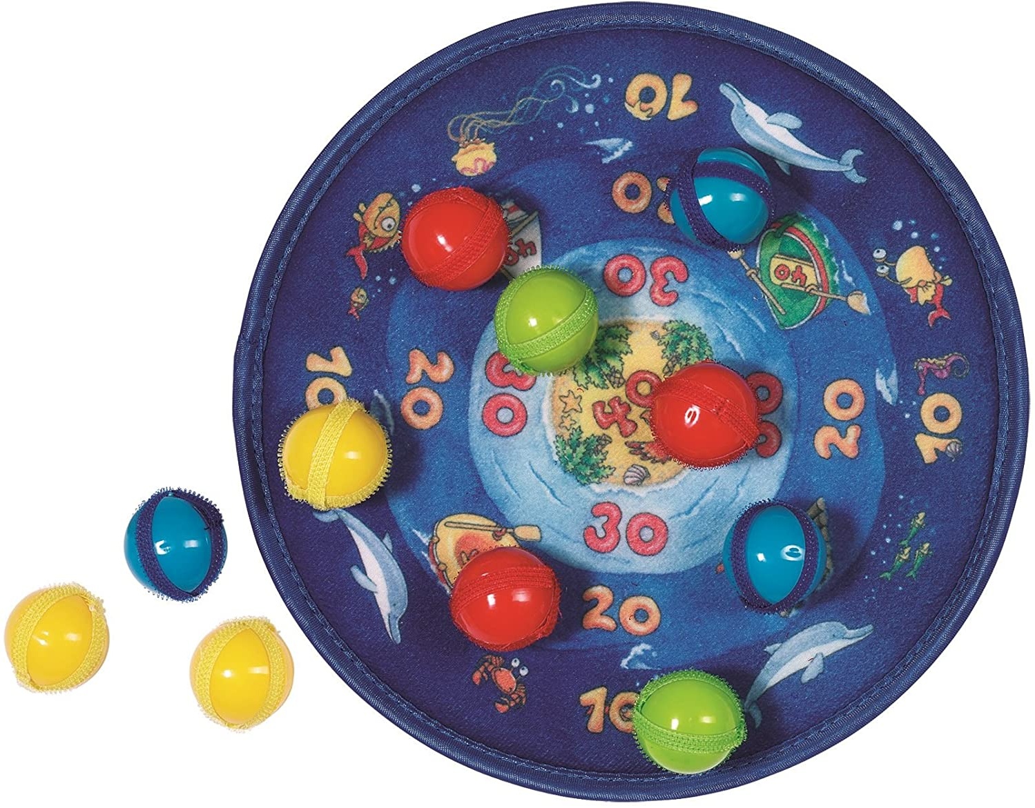 - Die Goki 56865 Klett-Dartscheibe Ozean ist ideal für Kinder und fördert die Hand-Augen-Koordination.