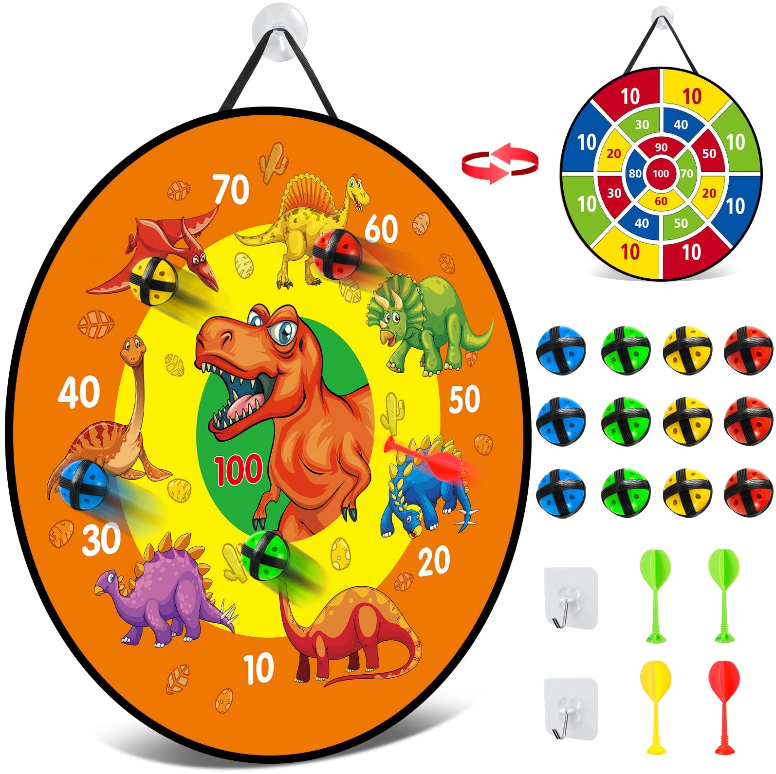 in DartscheibenDartscheibe für Kinder - 26 inchesMontessori Spielzeug Dinosaurier Thema Dart Board mit 12 Bällen Kinder Brettspiele Toy, Oppelseitige Safe Dart Game-Kinder Geschenk Outdoor Indoor Spiel (66 cm)