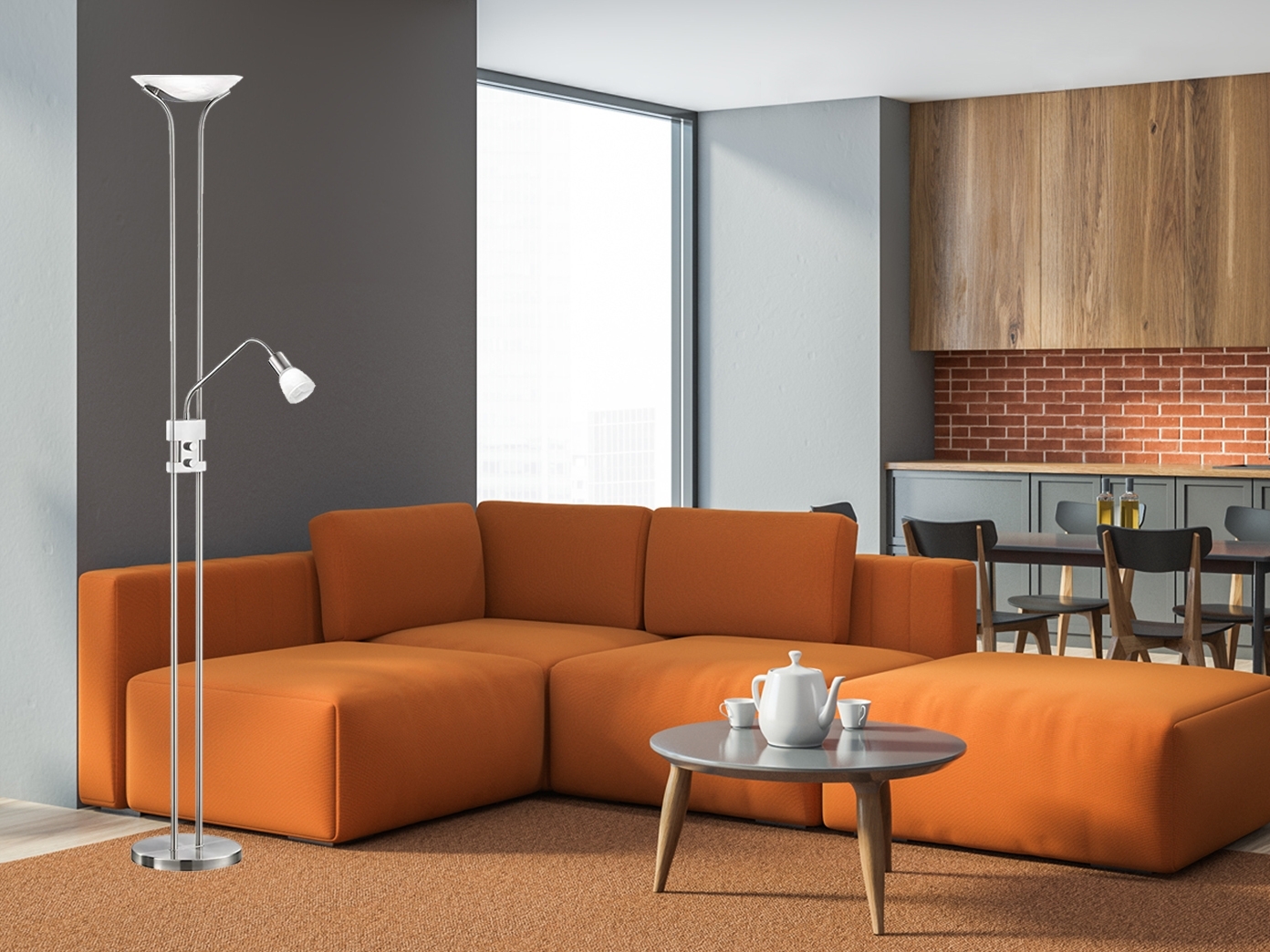 - Die Stehleuchte SANTO II bietet eine homogene und blendfreie Ausleuchtung dank des integrierten Dimmers und warmweißem Licht