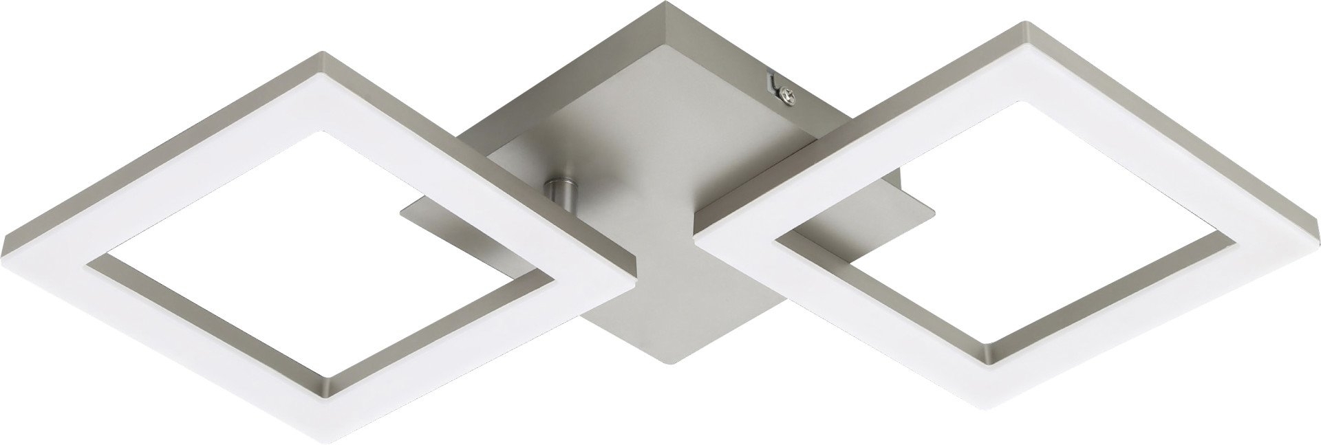 - Die LED Deckenleuchte HUERTA ist aus nickel-mattem Metall gefertigt und verfügt über zwei quadratische, verstellbare Leuchtelemente.