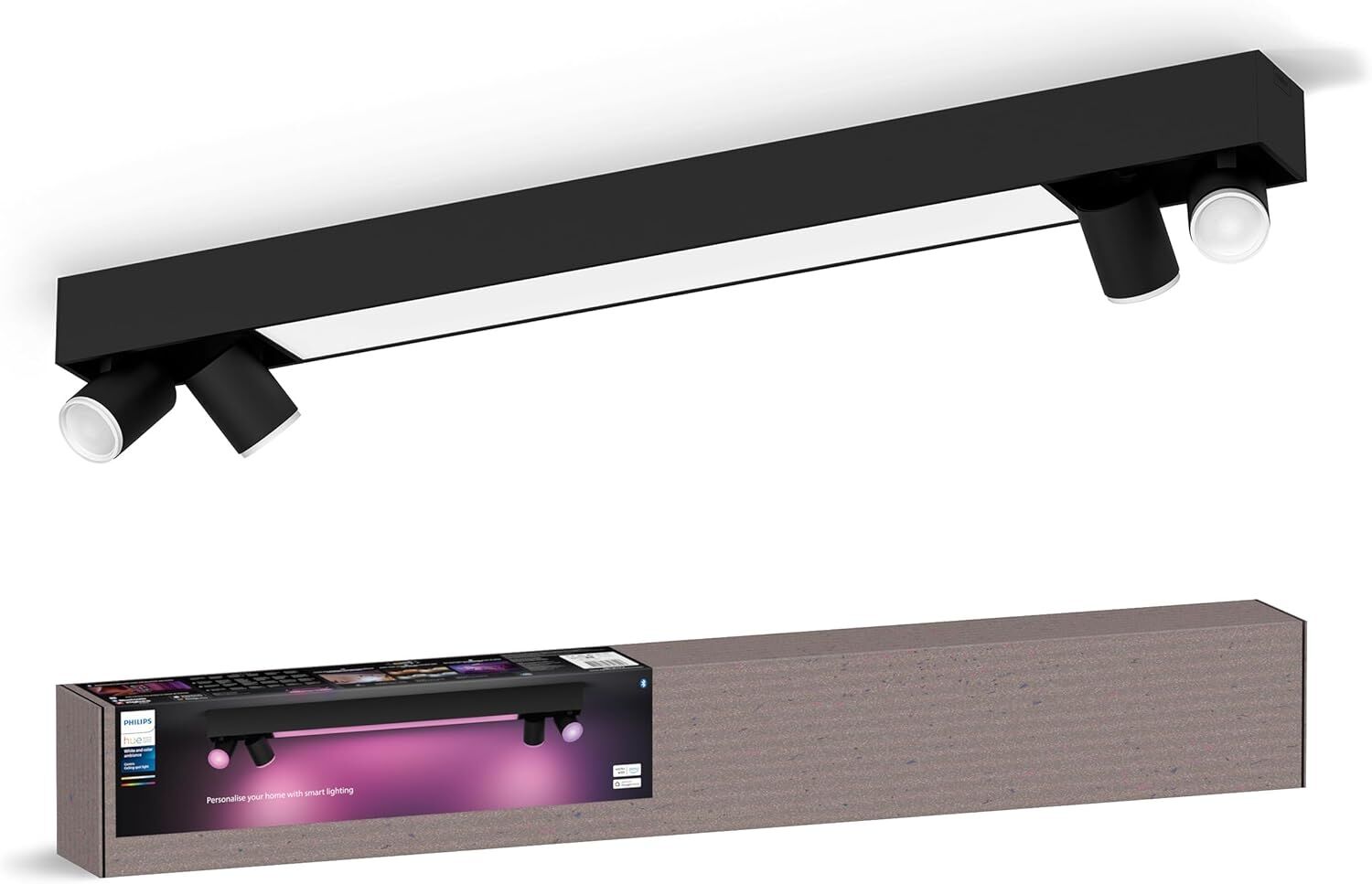 - Die Philips Hue White&Col. Amb. Centris Spot 4flg in Schwarz bietet sowohl funktionale Beleuchtung als auch Stimmungslicht.
