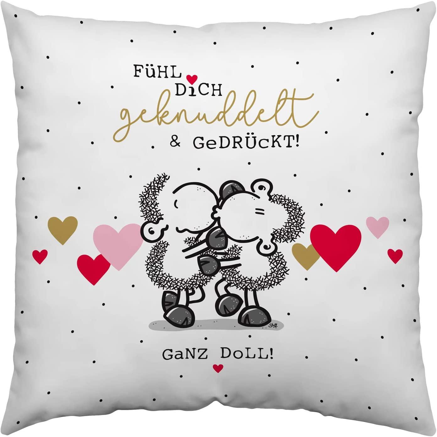 Das Baumwoll-Kissen "Fühl Dich geknuddelt" ist ein farbenfrohes Zierkissen mit den Maßen 40x40 cm. Die Hülle besteht aus 100% Baumwolle, während die Füllung aus 100% Polyester gefertigt ist. Mit dem witzigen Spruch „Fühl dich geknuddelt & gedrückt! Ganz doll!“ bringt es Freude und Farbe in Ihr Zuhause. Dieses Kissen ist nicht nur ein Blickfang, sondern auch eine ideale Geschenkidee für Verliebte und Freunde. Zudem ist es nach Öko-Tex Standard 100 zertifiziert und maschinenwaschbar. **Highlights** - Witziger Spruch für mehr Freude im Zuhause - Hülle aus 100% Baumwolle für angenehmen Komfort - Füllung aus 100% Polyester für optimale Formstabilität - Öko-Tex Standard 100 zertifiziert für schadstoffgeprüfte Textilien - Maschinenwaschbar für einfache Pflege **Produkteigenschaften** - Maße: 40x40 cm - Farbe: Mehrfarbig - Marke: Sheepworld - Kultstatus seit über 25 Jahren - Ideal als Geschenk für verschiedene Anlässe