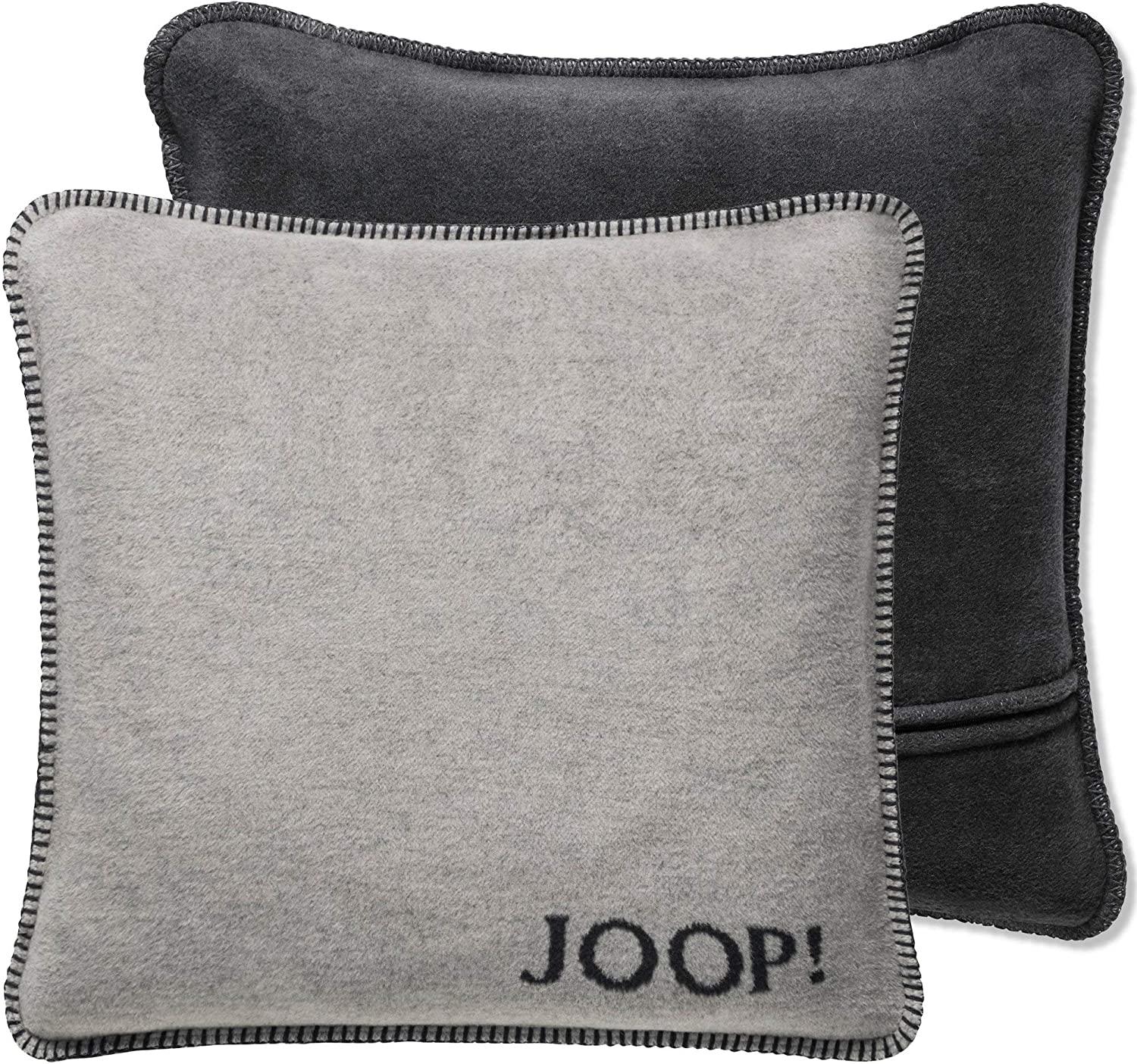 JOOP Uni Kissen Doubleface|50x50 cm Dekokissen gefüllt| Ash-Anthrazit