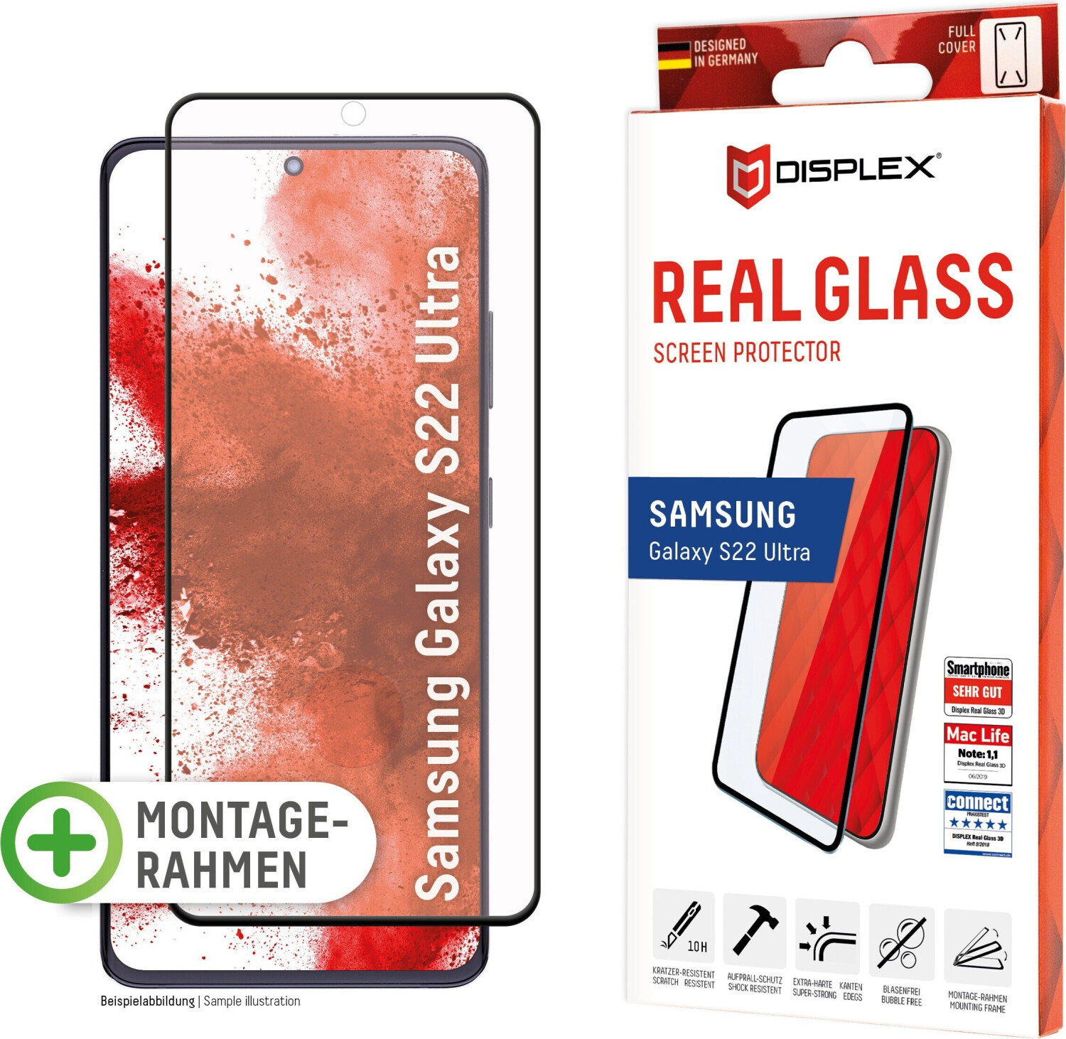 E.V.I. Displex Panzerglas (10H) für Samsung Galaxy S22 Ultra - Eco-Montagerahmen - Full Cover - Samsung - Galaxy S22 Ultra - Schlagfest - Kratzresistent - Staubresistent - Transparent - 1 Stück(e) (01577)