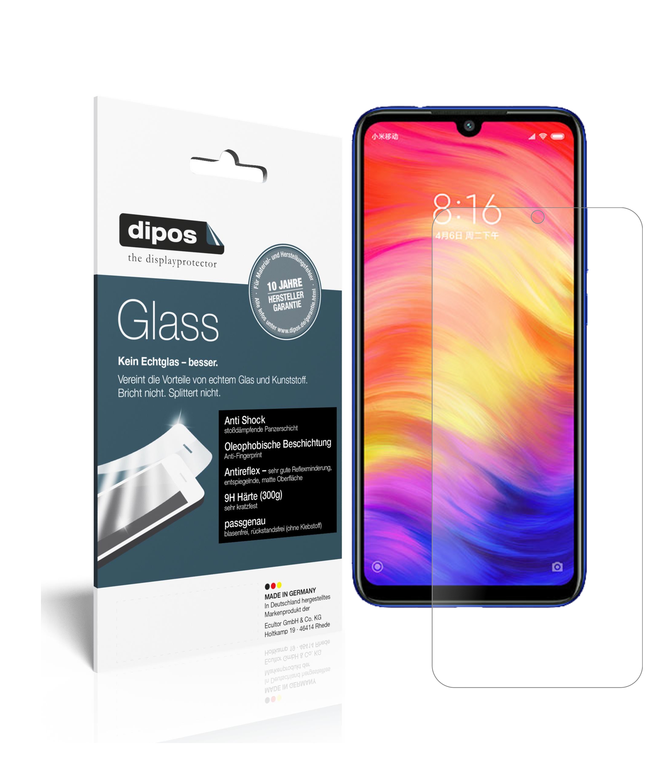 dipos 2x Panzerfolie matt kompatibel mit xiaomi Redmi Note 7S Schutzfolie 9H Displayschutz-Folie (bewusst kleiner als das Glas, da dieses gewölbt ist)