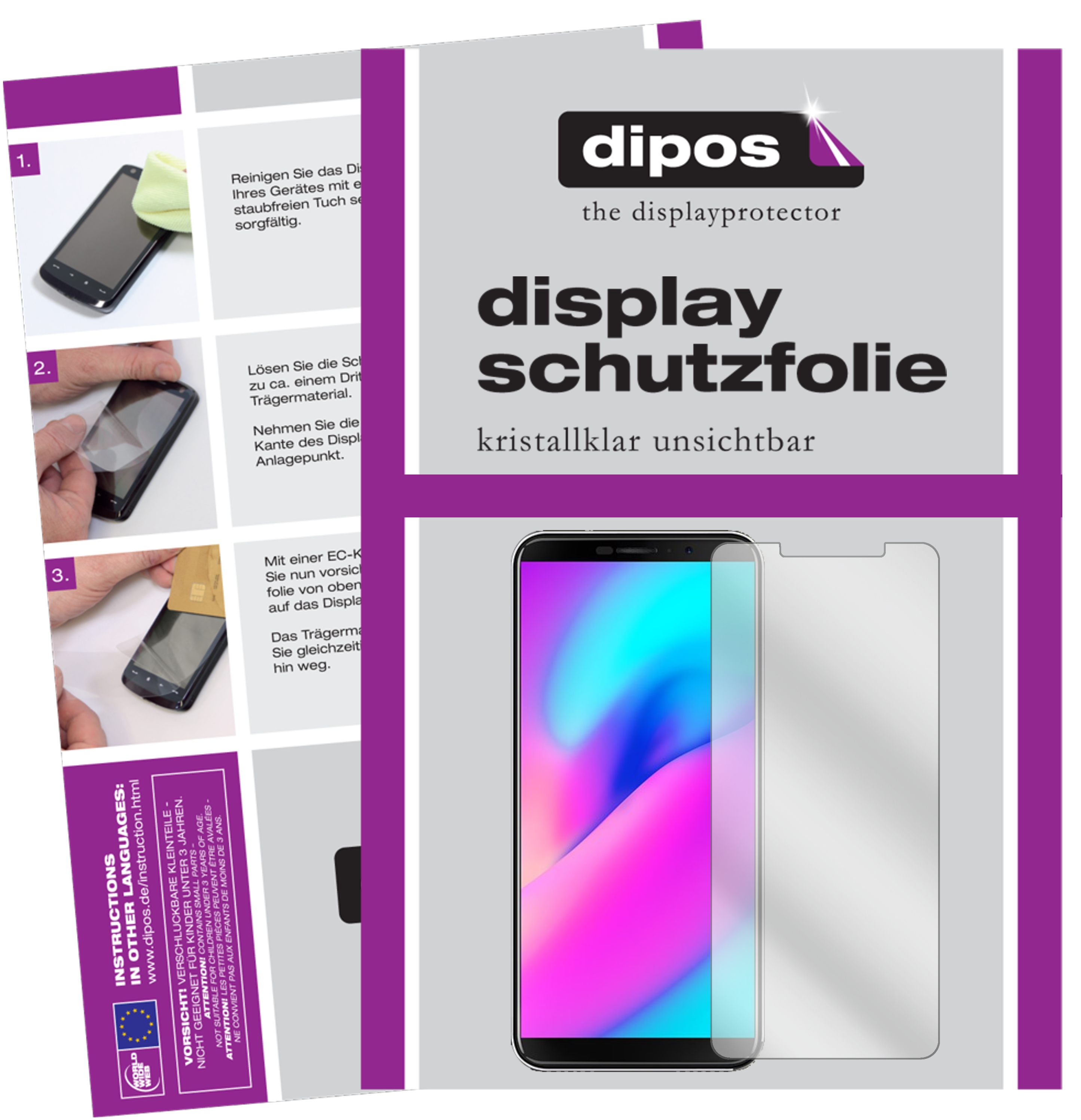 in Displayschutzfoliendipos 2x Schutzfolie klar kompatibel mit Cubot J3 Pro Folie Displayschutzfolie