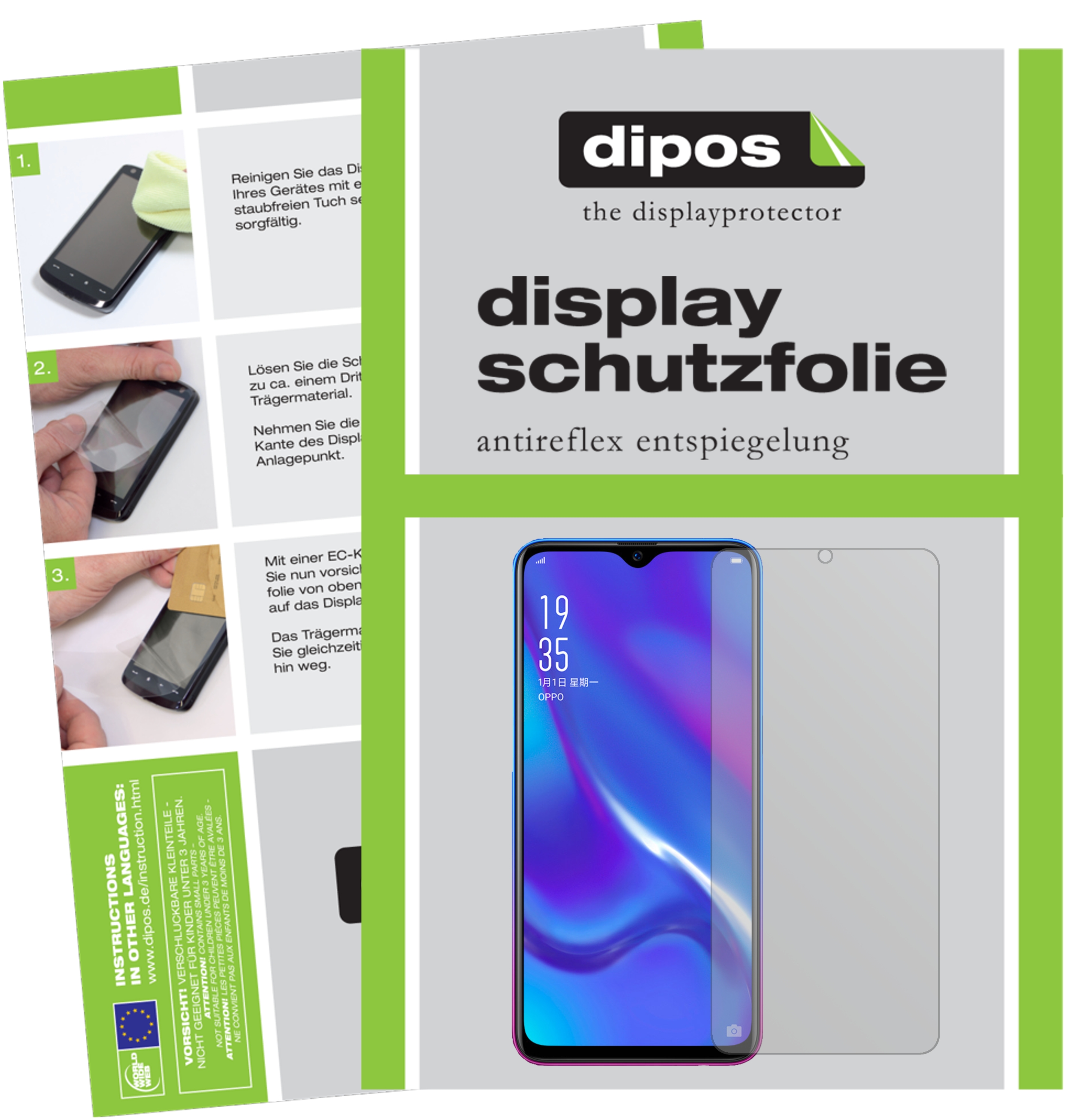 dipos 6x Schutzfolie matt kompatibel mit Oppo R17 Neo Folie Displayschutzfolie (3x Vorderseite + 3x Rückseite)