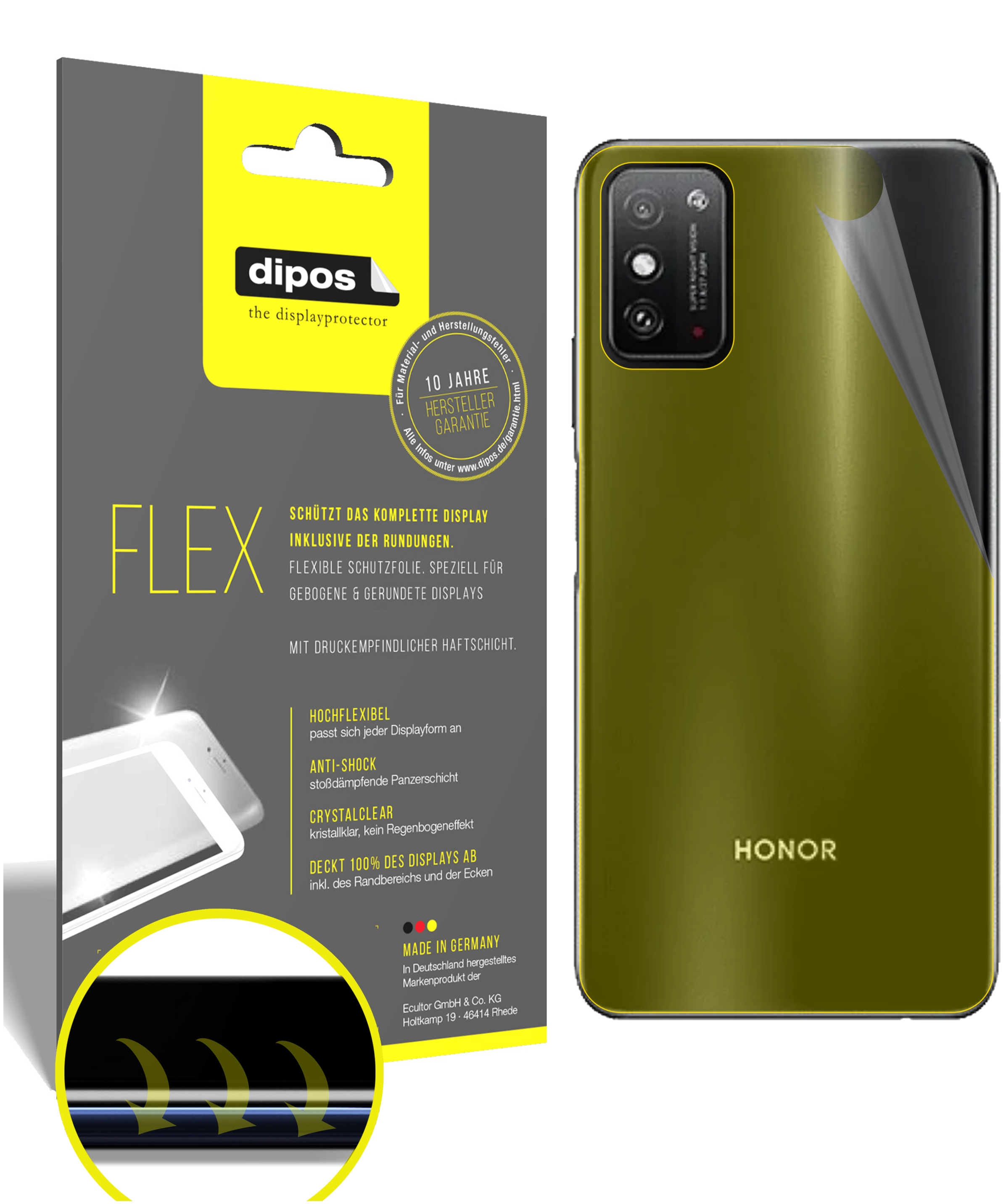 in Displayschutzfoliendipos 2x Schutzfolie 100% kompatibel mit Honor x10 Max 5G Rückseite Folie I Full Cover 3D Displayschutz-Folie