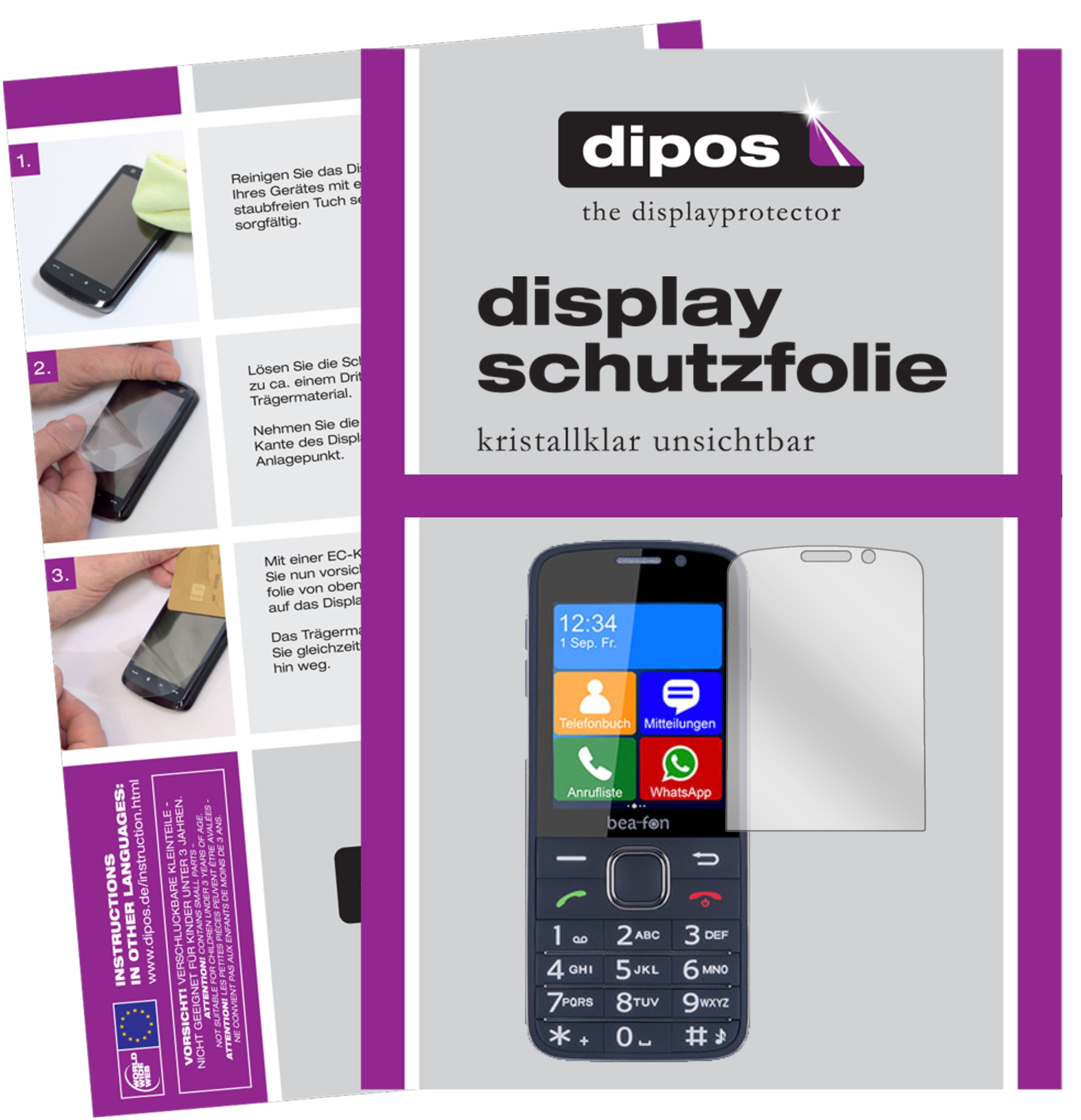dipos 2x Schutzfolie klar kompatibel mit bea-fon SL820 Folie Displayschutzfolie