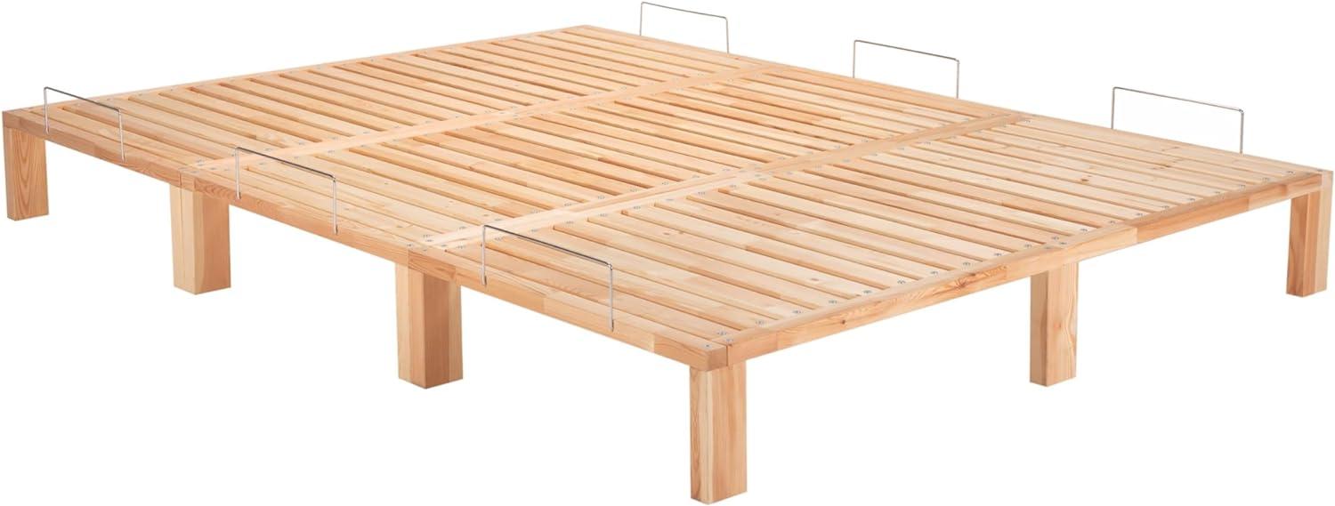 Das Gigapur Massivholzbett G56 überzeugt mit einer großzügigen Liegefläche von 250 x 200 cm und einer hohen Belastbarkeit von bis zu 200 Kilo pro Liegeseite. Die stabilen, verschraubten Leisten garantieren einen geräuschlosen Liegekomfort. Mit einer Gesamthöhe von 29 cm und 25 cm hohen Füßen bietet es zudem viel Stauraum. Hergestellt aus unbehandelter europäischer Kiefer, ist es einfach zu montieren und flexibel kombinierbar. **Highlights** - Hohe Belastbarkeit von 200 Kilo pro Liegeseite - Geräuschloser Liegekomfort durch verschraubte Leisten - Viel Stauraum dank 25 cm hohen Füßen - Flexibel kombinierbar mit anderen Einzelbetten - Kinderleichte Montage und Demontage **Produkteigenschaften** - Liegefläche: 250 x 200 cm - Leistenabstand: 2,5 cm - Gesamthöhe: 29 cm - Länge mit beiden Matratzenbügeln: 201,5 cm - Material: massive, unbehandelte europäische Kiefer - Bettverbinder serienmäßig mitgeliefert - Werkzeug für Montage im Lieferumfang enthalten **Lieferumfang** - 1 x Gigapur Massivholzbett G56 - 1 x Lattenrost - Bettverbinder - Werkzeug für Montage - Matratzen nicht im Lieferumfang enthalten