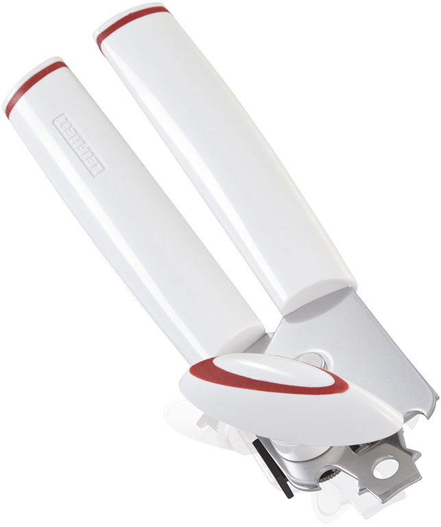- Der Leifheit Dosenöffner Lifty besteht aus robustem Metall und hat einen Griff aus Kunststoff.