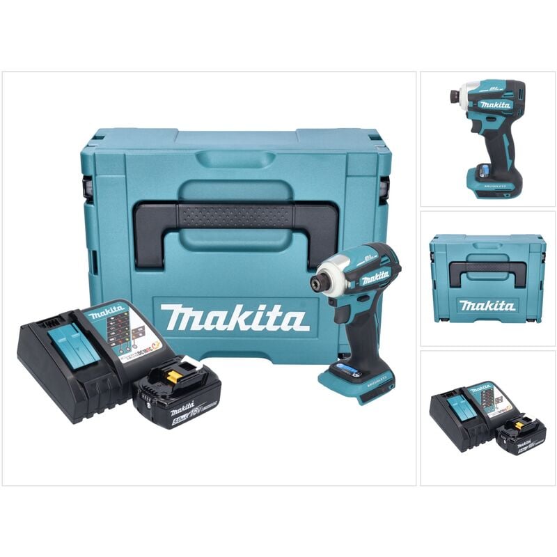 Makita DTD 172 RT1JAkku Schlagschrauber 18 V mit 180 Nm, 1/4' Brushless, inkl. 5,0 Ah Akku, Ladegerät und Makpac