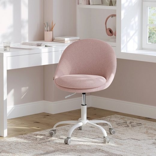in DrehstühleSongmics DrehstuhlSchreibtischstuhl, höhenverstellbar, Stahl, Baumwoll-Leinen-Mischgewebe, rosa, 60x60 x (80-90) cm