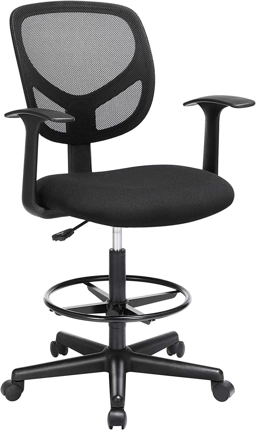 | Name | SONGMICS Arbeitsstuhl, Ergonomischer Bürostuhl mit Armlehnen, Sitzhöhe 55-75 cm, Hoher Drehstuhl mit verstellbare Fußring, Belastbarkeit 120 kg, Schwarz OBN25BK |