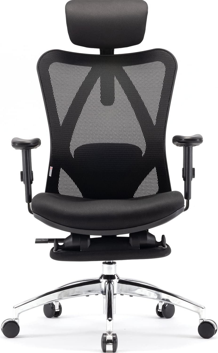 | Name | SIHOO Ergonomischer Büro-Liegestuhl mit Fußstütze, Computer-Schreibtischstuhl, verstellbaren Kopfstützen Stuhllehne und Armlehnen-Netzstuhl (Schwarz) |