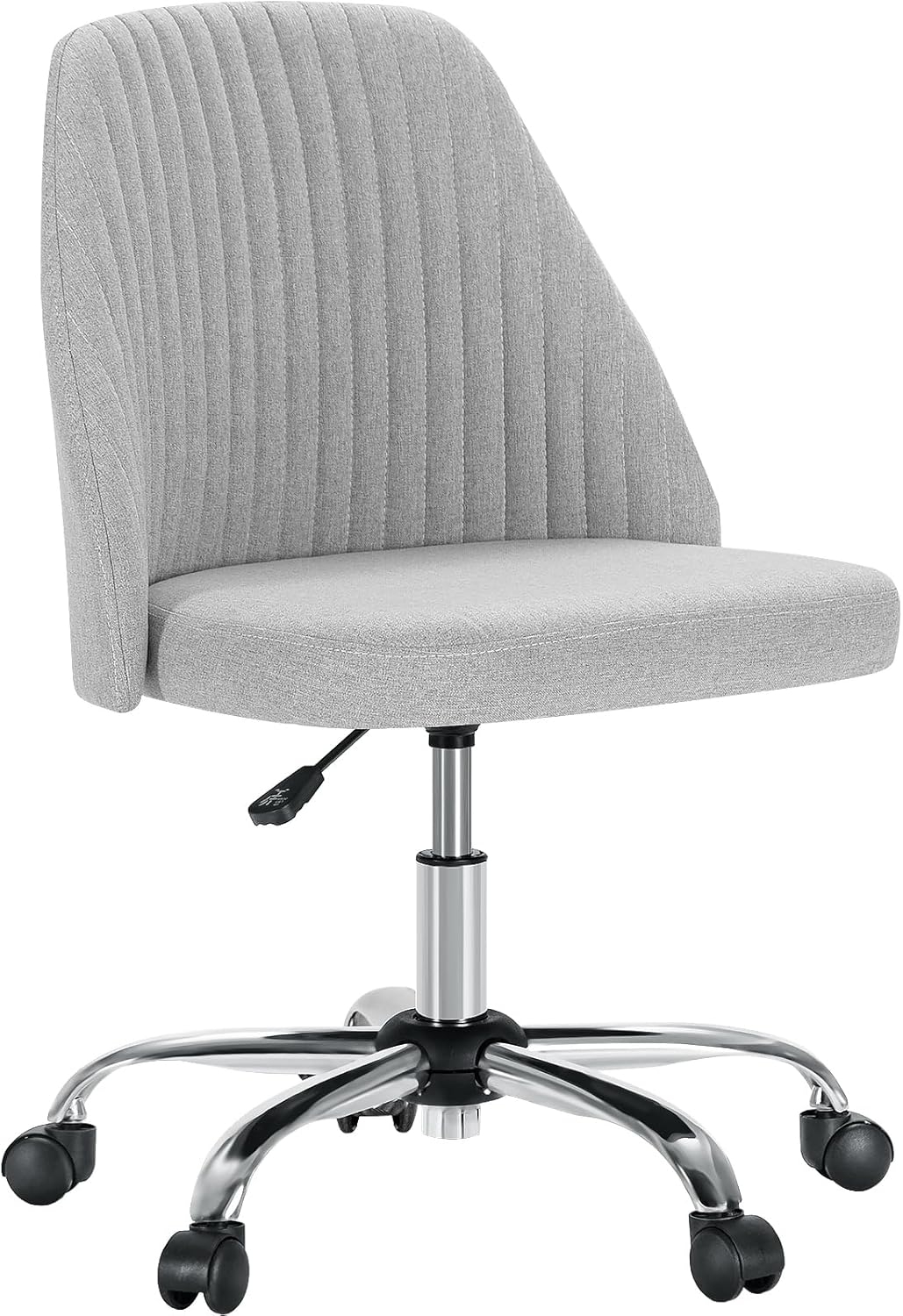 Sweetcrispy Armless Office Chair Niedlichermoderner Stoff, Heimbüro, Schreibtischstühle mit Rollen, Verstellbarer Drehstuhl, Computer-Schminkstuhl für kleine Räume, Metall, Grau, 17 in