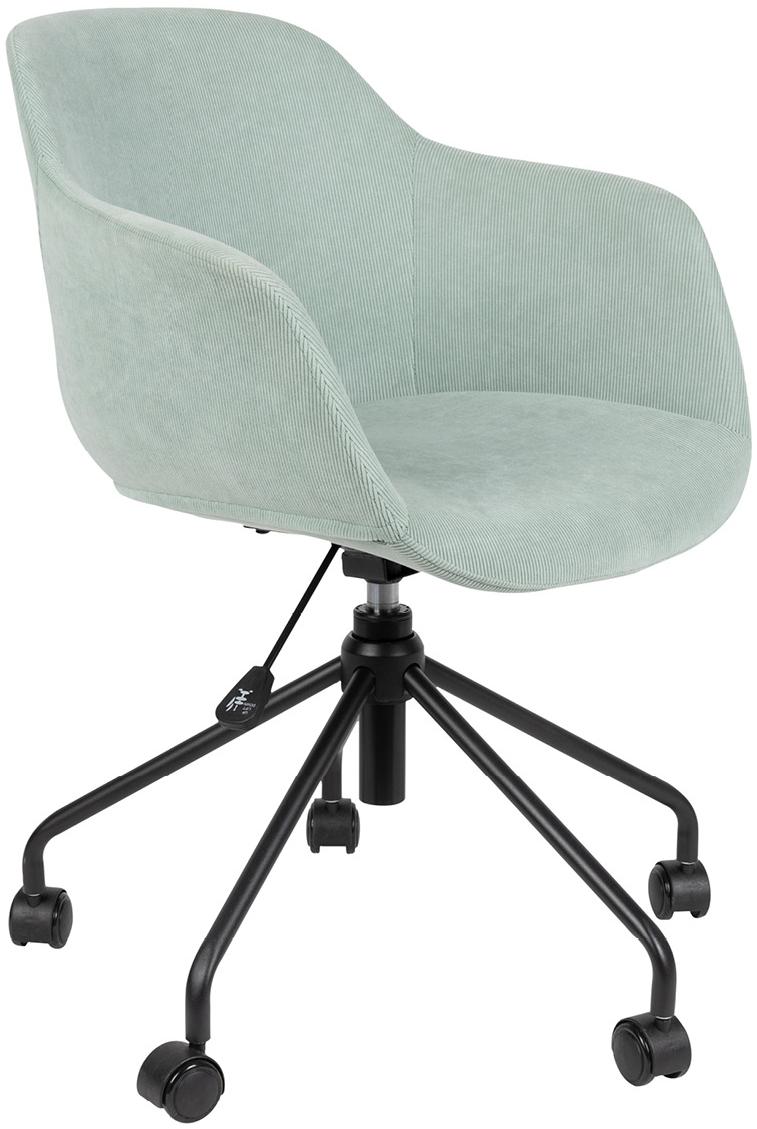 Der Bürostuhl "Jenson" in Mint vereint skandinavisches Design mit Komfort. Die bequeme Sitzschale aus feinem Kord und das schlichte Gestell aus pulverbeschichtetem Stahl bieten eine gemütliche Sitzgelegenheit für lange Bürotage. Mit einer maximalen Gewichtsbelastung von 120 kg und einer robusten Verarbeitung ist dieser Stuhl ideal für den täglichen Einsatz. **Highlights** - Bequeme Sitzschale aus feinem Kord - Schlichtes Gestell aus pulverbeschichtetem Stahl - Material Bezug: 100% Polyester - Maximale Gewichtsbelastung: 120 kg - Scheuertouren: 20.000 Martindale **Produkteigenschaften** - Farbechtheit: 4 - Sitzhöhe: 45-51 cm - Sitztiefe: 42 cm - Abmessungen: Höhe 79-85 cm, Breite 56 cm, Tiefe 59,5 cm - Gewicht: 10,4 kg **Lieferumfang** - 1 Stuhl