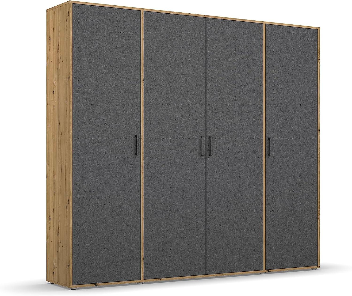 | Name | Rauch Möbel Voyager Schrank Kleiderschrank Drehtürenschrank, Graumetallic/Eiche Artisan, 4-türig, inkl. 1 Kleiderstange, 7 Einlegeböden BxHxT 187x194x53 cm |