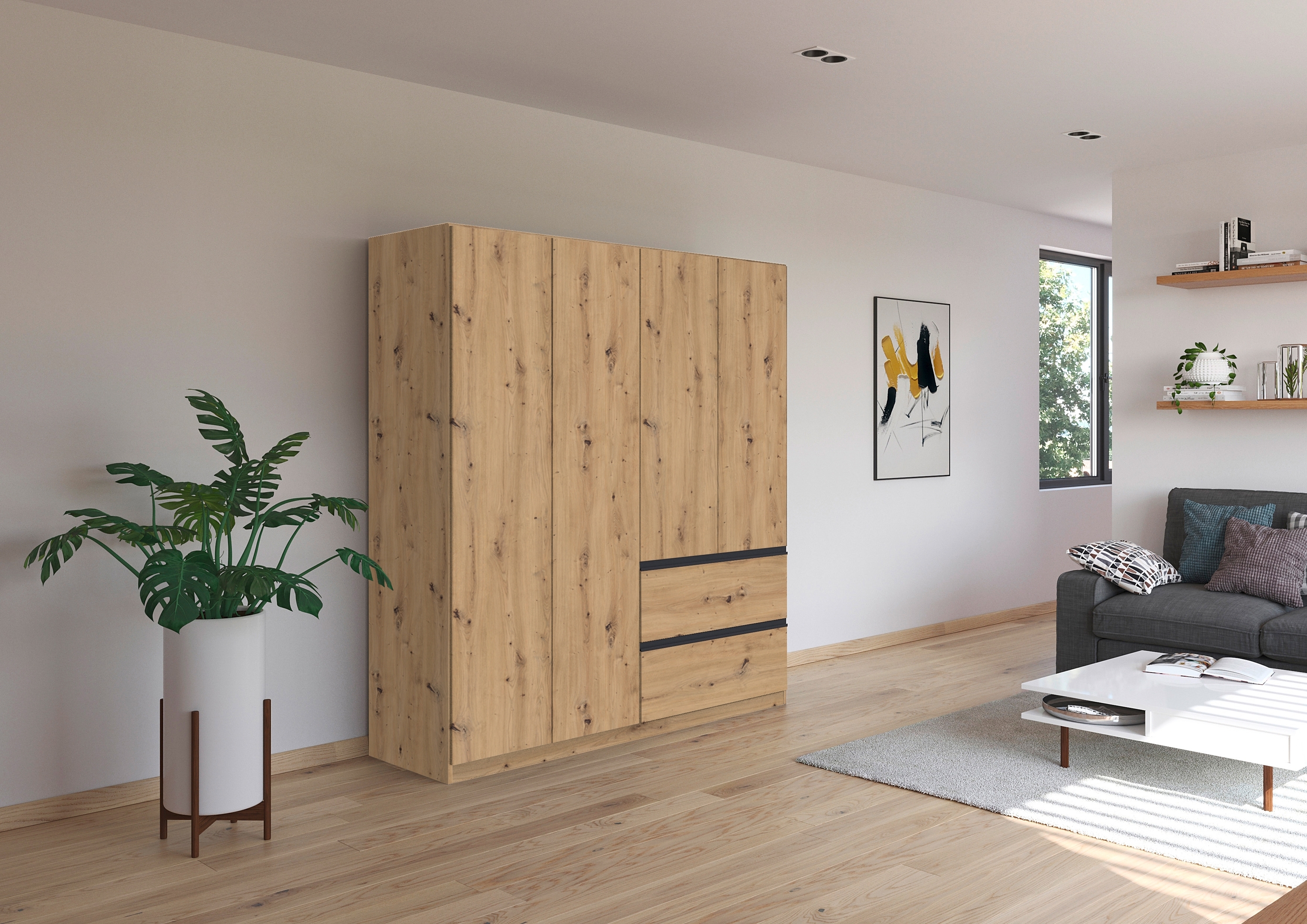 in Drehtürenschränkerauch KleiderschrankDrehtürenschrank COSTA, 4-türig, push-to-open, Eiche Artisan, 181 x 197 x 54 cm